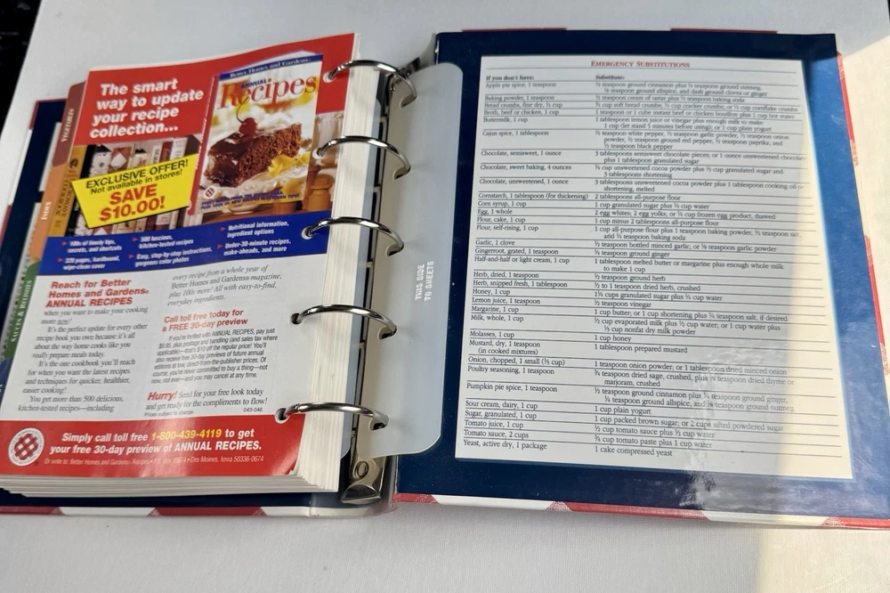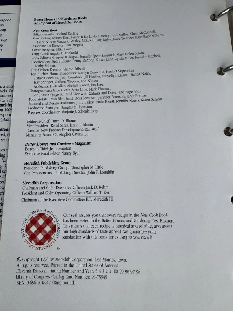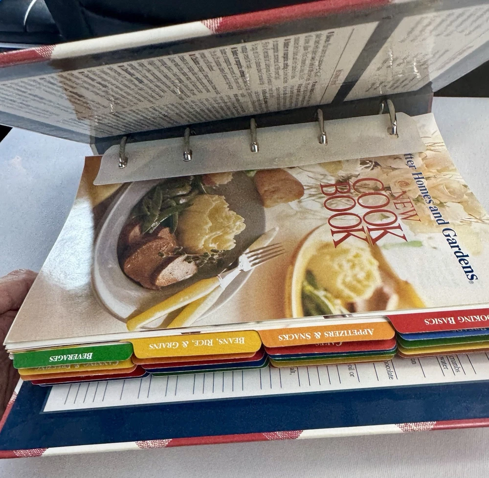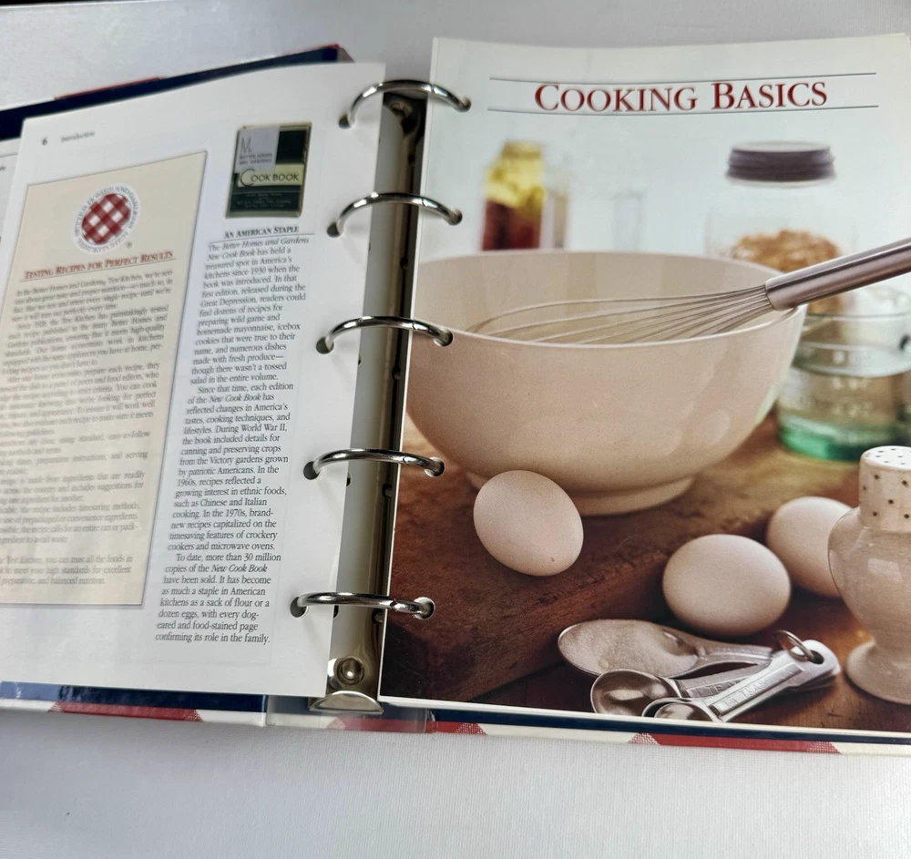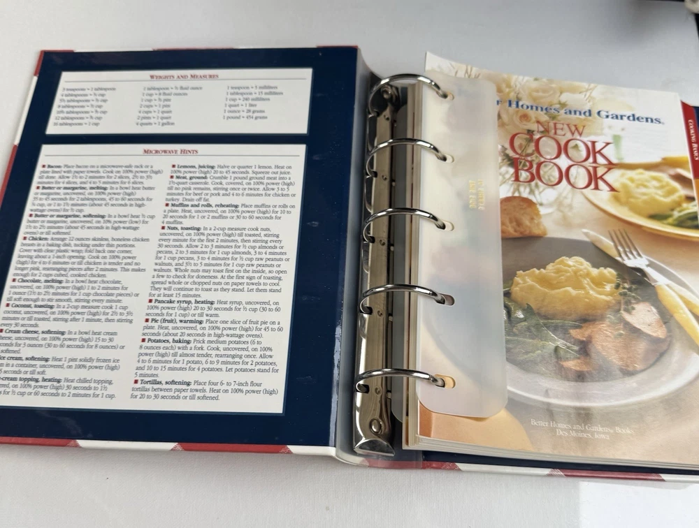The Better Homes and Gardens New Cookbook 1996 5-Ring Binder 11th Edition is a comprehensive guide to cooking, featuring 540 pages filled with delicious recipes and tips for home cooks. With a hardcover binding and illustrator included, this cookbook is a valuable addition to any kitchen library. Published by Meredith Books in 1996, this edition showcases a Grannycore aesthetic with a focus on general cooking topics, making it a must-have for cooking enthusiasts looking to explore new dishes and techniques. This cookbook is in good vintage condition. The cover has some slight wear and 2 of the corners show signs of wear as you can see in the last pictures. Please refer to my pictures as part of my description.