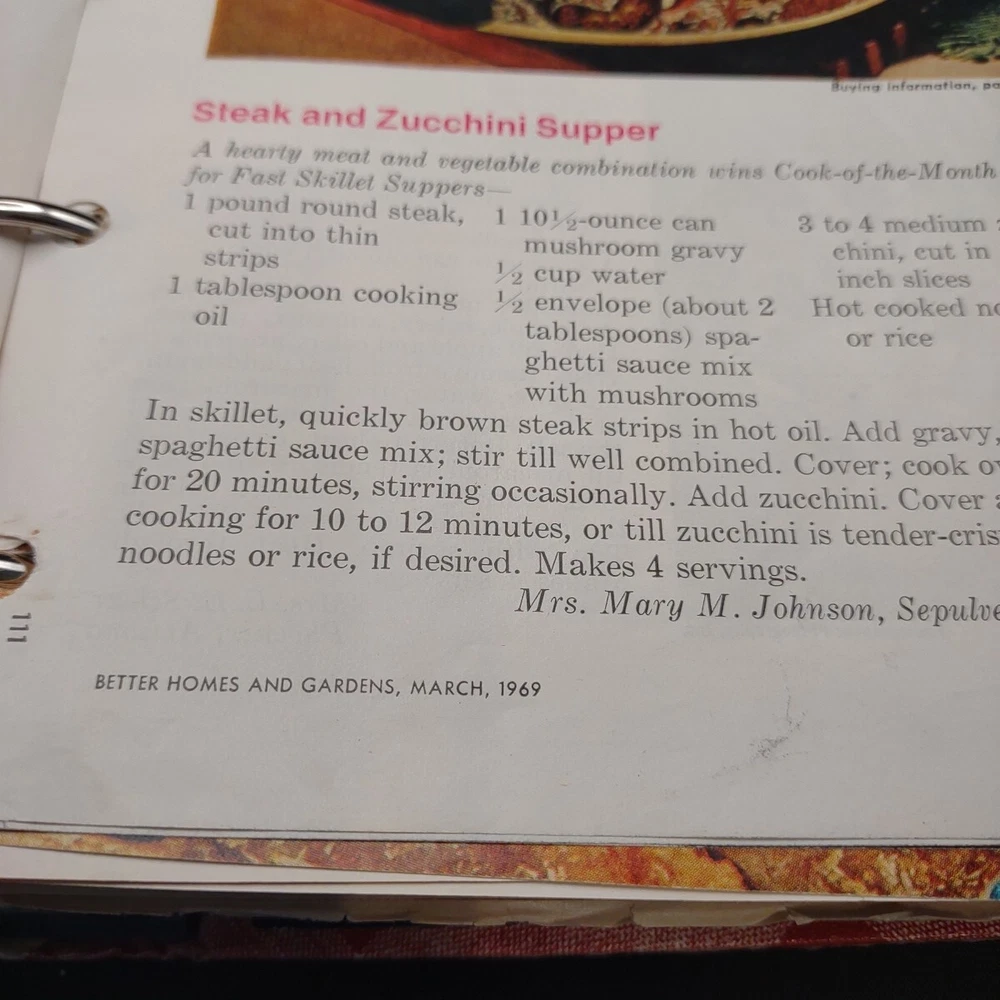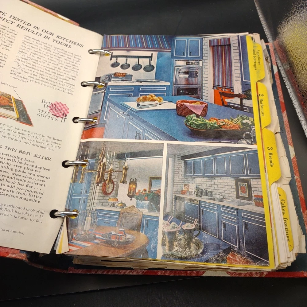 Better Homes and Gardens New Cookbook five ring binder published in 1968. Cookbook appears to be complete and includes a number of pages that were added from The better homes and gardens magazine in 1969. A few of the pages have torn out of the binder and they located at the back of the book. Please see photos for item detail. Thank you for looking and have a great day.