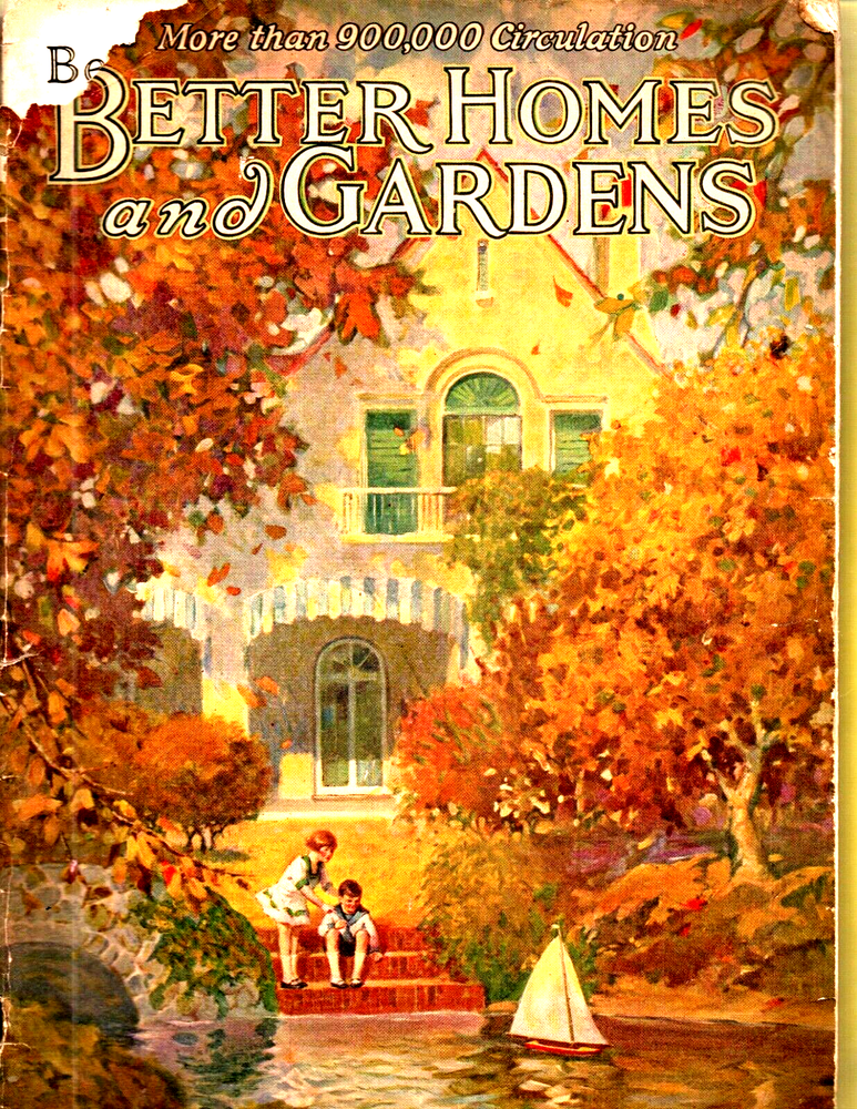 Better Homes and Gardens November 1927 Children Playing with Toy Sailboat in front o house nek...