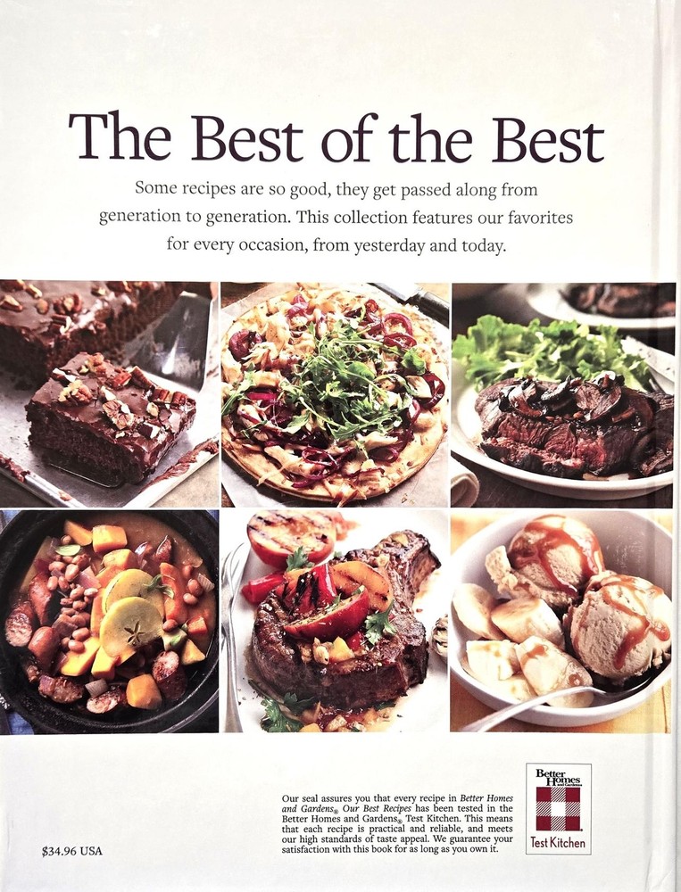 Better Homes and Gardens Our Best Recipes Better Homes and Gardens Our Best Recipes *New* Features Details Product Dimensions: 7.0 x 5.0 x 1.0 inches Item Weight: 1.9 pounds Shipping Weight: 1.9 pounds Manufacturer: DefaultBrand Anthem Books Difference Great quality new and used items! We aim to exceed expectations on every order with quick shipping and extra attention to quality packaging! Competitive Pricing With our dynamic pricing model, our prices are always competitive. Our prices are some of the lowest that you will find on the internet. Rest assured that you're getting a good deal when purchasing with us. 30-day Money Back Guarantee We are committed to making sure that you leave this transaction satisfied. If you're unhappy with the product for any reason, you may return it back for your money-back or a replacement within 30 days.
