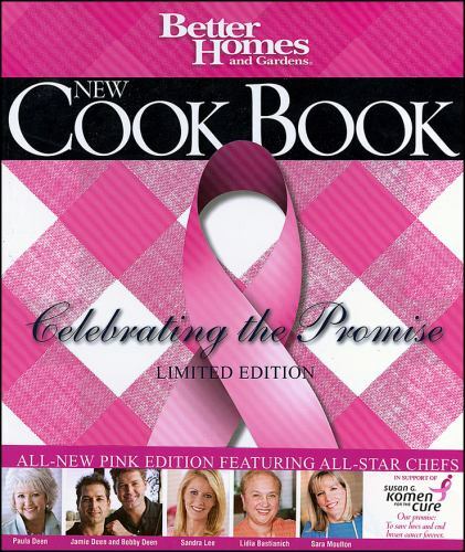 In addition to the inspiring Pink Section-the Promise for the Cure chapter-this limited edition contains the all-new complete Better Homes and Gardens New Cook Book 14th edition, with more than 1,400 mouthwatering recipes and 800 beautiful photos. Celebrity cookbook authors including Paula Deen, Sandra Lee, Lidia Bastianich, Sara Moulton, Pam Anderson, Joanne Weir, Nathalie Dupree, Mary Sue Milliken, and Susan Feniger share a recipe and some special words about this important cause. The Pink Section includes more than 70 delicious, all-new recipes that feature fresh foods associated with reducing the risk of cancer, plus nearly 60 color photos. Warm, witty inspiring quotes pepper these pink pages to reveal the strength and humanity of women across the nation. A unique section focusing on the benefits of a strong mind, body, and spirit connection. The mission of the Komen for the Cure is to eradicate breast cancer as a life-threatening disease through research, education, screening, and treatment. For more information, please contact the Komen for the Cure at 1.800.I'M AWARE r or www.komen.org, In addition to the inspiring Pink Section, this limited edition contains the all-new completeBetter Homes and Gardens New Cook Book 14th edition, with more than 1,400 mouthwatering recipes and 800+ beautiful photos. Celebrity cookbook authors including Paula Deen, Sandra Lee, Lidia Bastianich, Sara Moulton, Pam Anderson, Joanne Weir, Nathalie Dupree, Mary Sue Milliken, and Susan Feniger share a recipe and some special words about this important cause. More than 50 delicious, all-new recipes that feature fresh foods associated with reducing the risk of cancer. Warm, witty inspiring quotes will pepper these pink pages to reveal the strength and humanity of women across the nation. A unique section focusing on the benefits of a strong mind, body, spirit connection. The mission of the Komen for the Cure is to eradicate breast cancer as a life- threatening disease through research, education, screening, and treatment. For more information, please contact the Komen for the Cure at 1.800.I'M AWARE ? or www.komen.org |