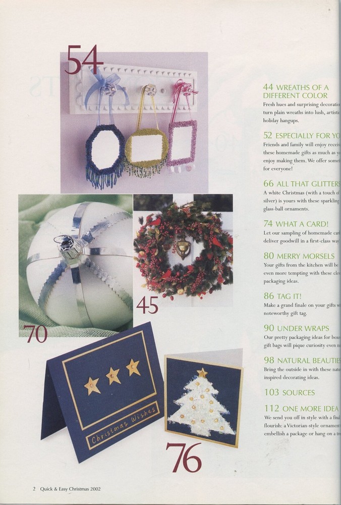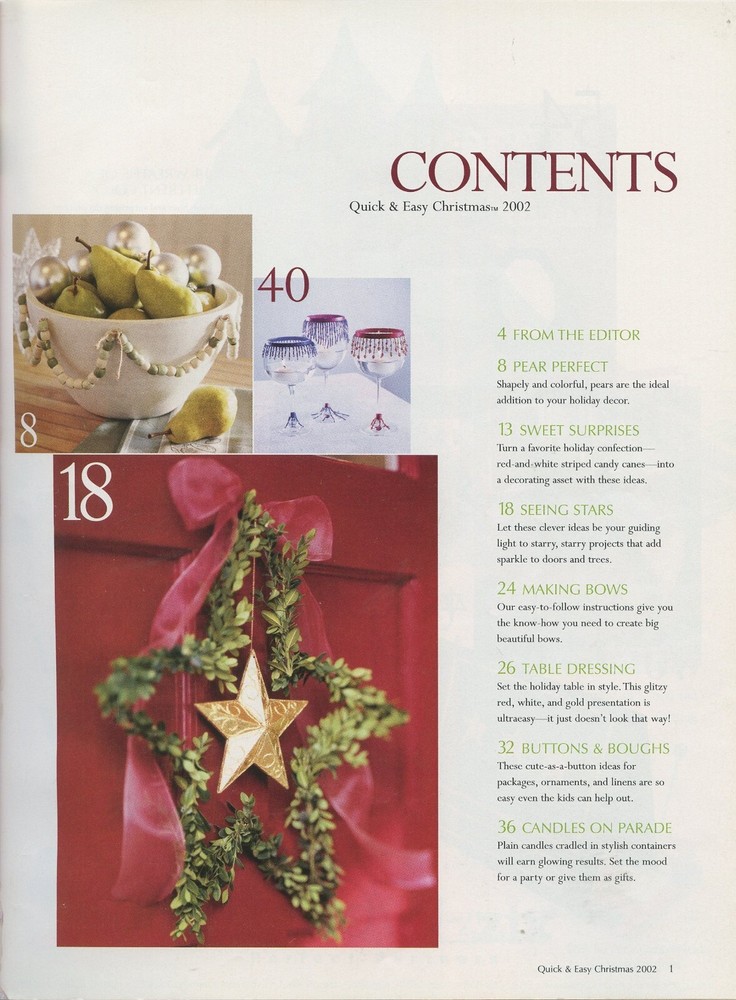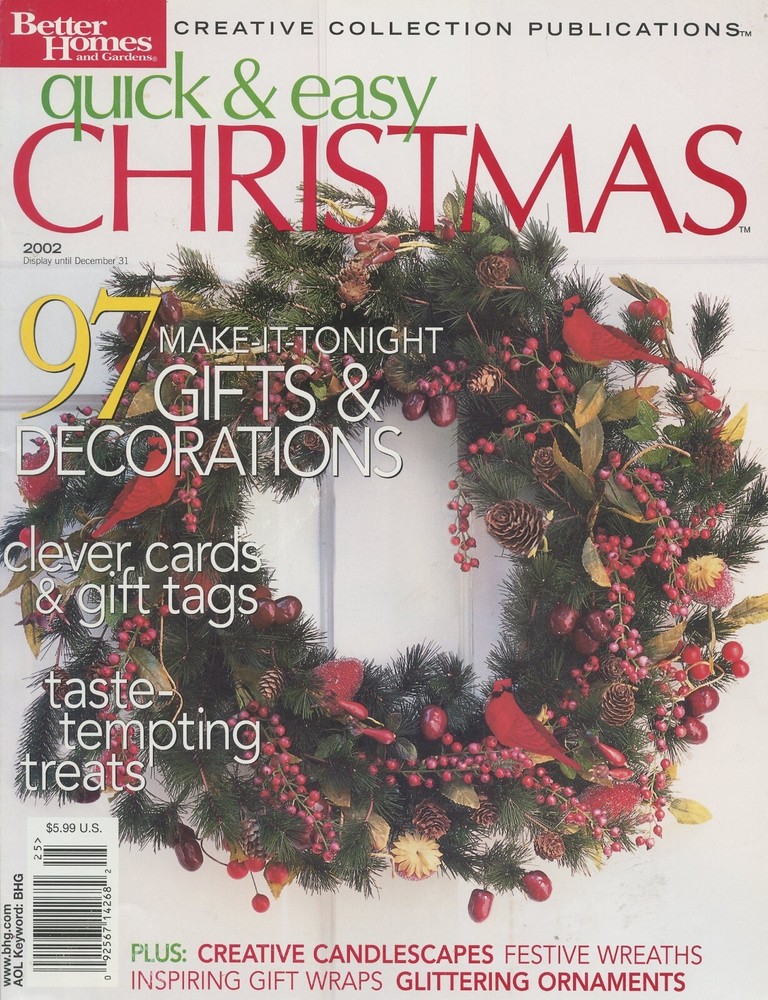 Better Homes and Gardens Quick & Easy Christmas Decorative Crafts Magazine 2003 Magazine is Gently Used See Picture(s) for Contents in Magazine Listed from my smoke / pet free home. Combined shipping is always offered! If purchasing more than one item, please let me know so that I can give you an exact shipping quote. I do ship internationally although there are additional shipping charges involved. Any additional charges for duty tax etc. is not covered and must be paid by buyer.