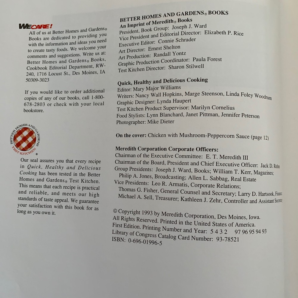 Better Homes and Gardens Quick Healthy and Delicious Cooking 1993. Please see pictures for more details. Any Questions Please Ask