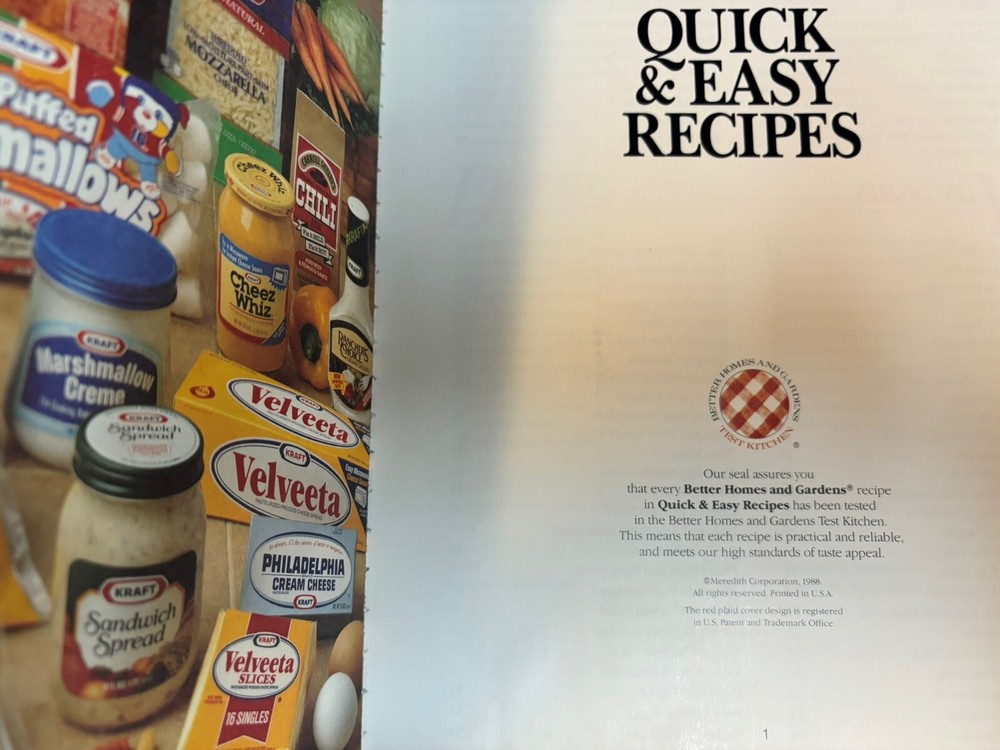 Better Homes and Gardens Quick & Easy Recipes Cookbook. Vintage from 1988 with 80 pages. I had sent for it many years ago but never used it.