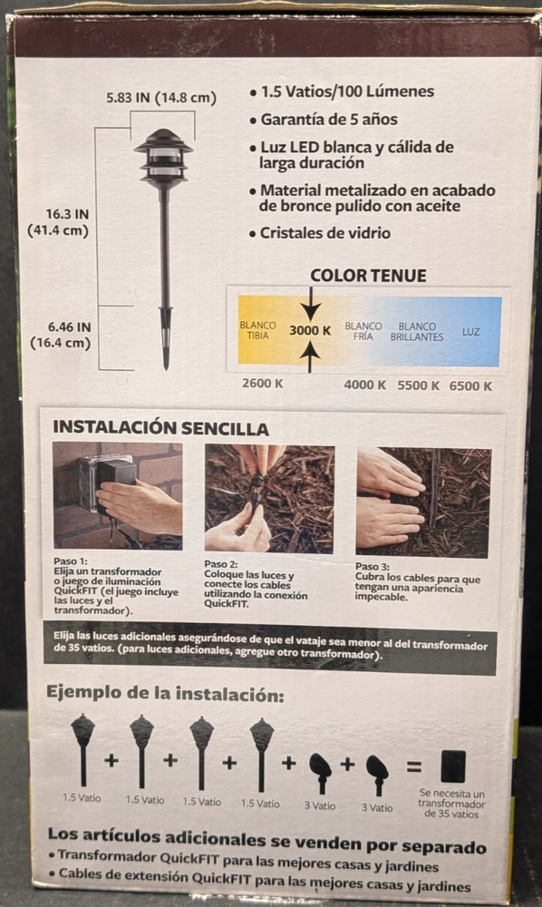 Better Homes and Gardens QuickFIT LED Pathway Light FRAYSER Tiered Pathway Light. If you have any questions, please ask before purchasing. If for any reason you are not 100% satisfied with your experience, please contact me right away so I can make it right before leaving negative feedback. I appreciate your business, Thank you. I will no longer ship to freight forwarding companies . Scammers are using them to steal merchandise from sellers, sorry for any inconvenience.