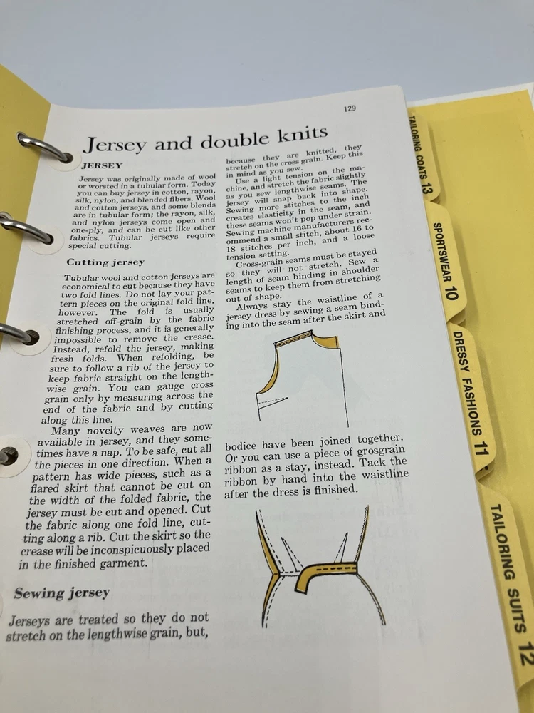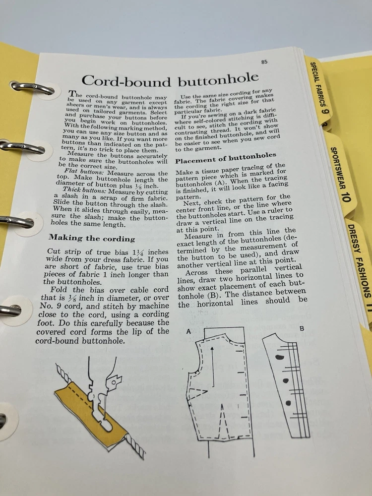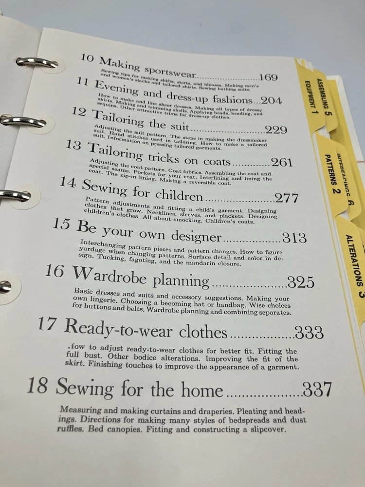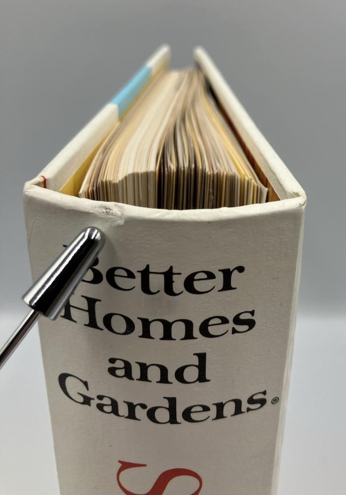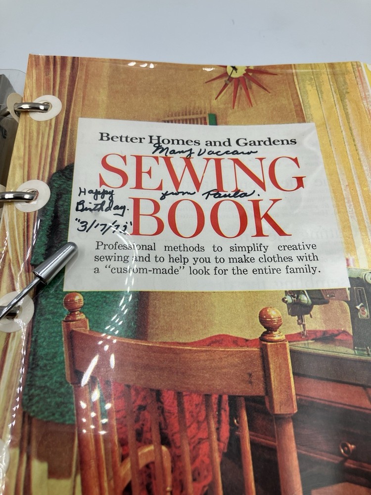 Title: Better Homes and Gardens Sewing Book Condition: Very Good Details: This 5-ring bound hardcover is the 4th printing of the 2nd edition from 1970 and has complete pages with no writing save for a name and date written on the title page. The tabs are clean as are the well preserved pastedowns. The minimal shelf wear and bumping to the covers is shown in the pictures with the pointer at the headcap and tailcap and small areas of cover boards Please see pictures, read descriptions or ask questions before buying