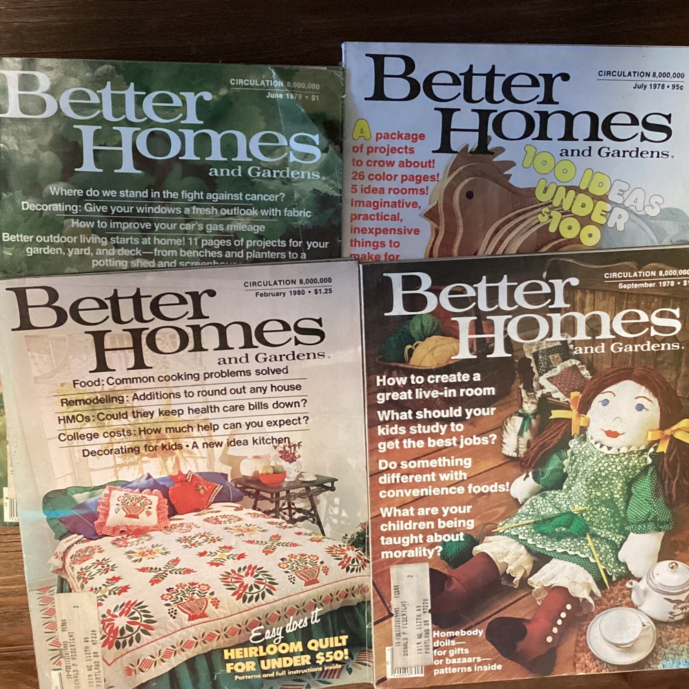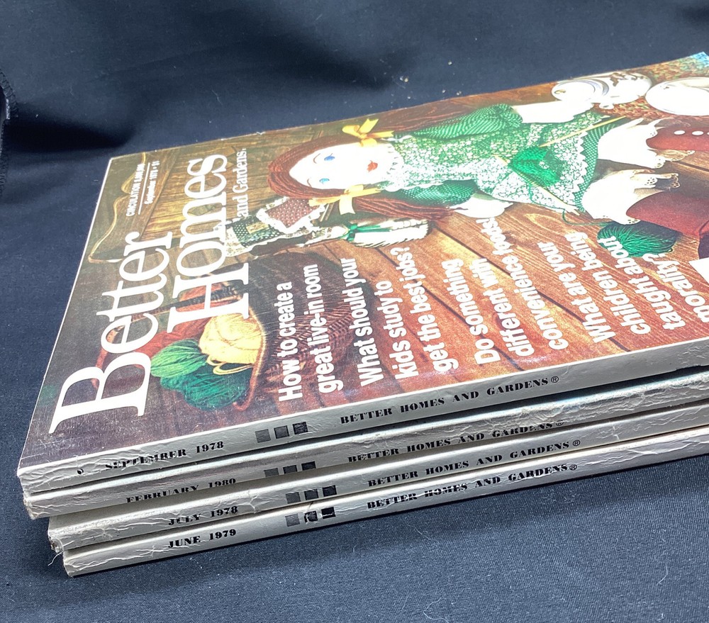 Better Homes and Gardens Vintage Magazine Collection Includes 4, as seen in photos. All mags are in very good condition! No missing, torn, cut-out pages & no writing. JULY 1978 SEPTEMBER 1978 JUNE 1979 FEBRUARY 1980 —- Free Shipping —- mitch/L