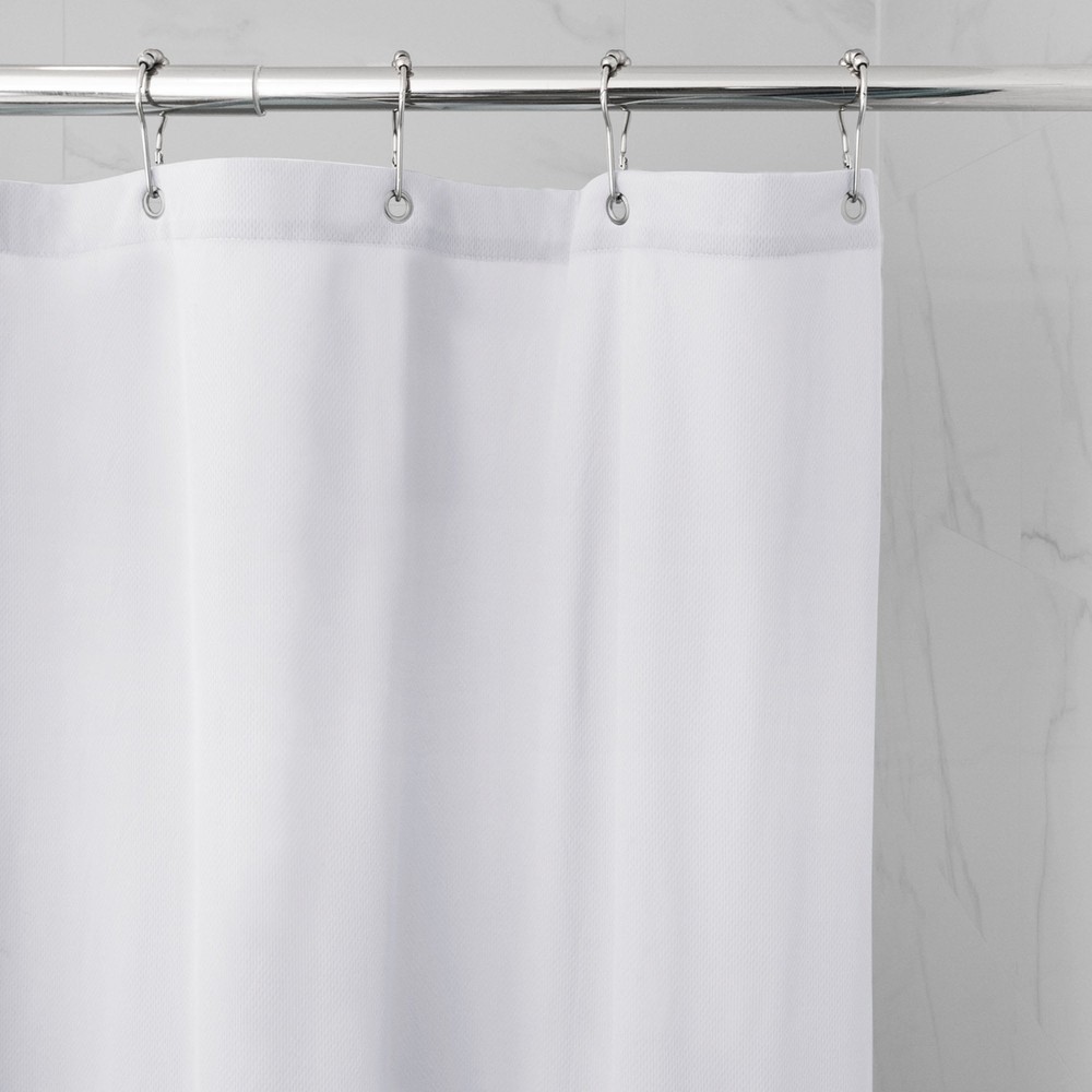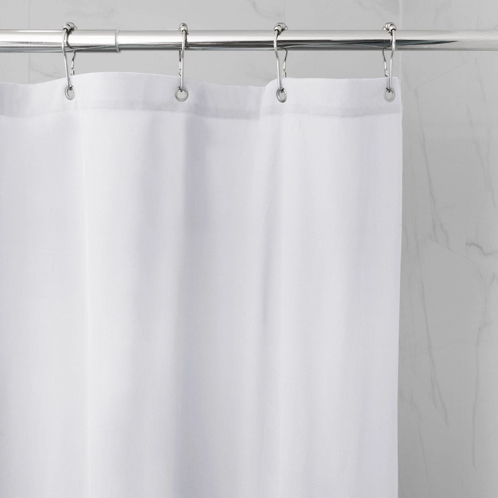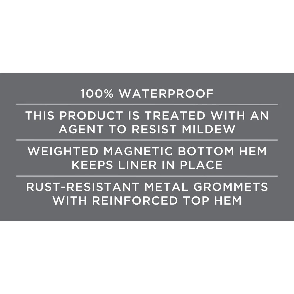 Protect your bathroom floor and keep water out of your tub with a 100% waterproof fabric shower curtain liner. Using patented technology, the polyester shower curtain's laminated backing creates a protective barrier for your shower curtain liner, preventing water from penetrating. It has the soft, comfortable feel of fabric with the functionality of a vinyl shower curtain liner. The waterproof shower curtain liner is treated to resist mildew. The magnetic hem at the bottom holds the liner close to your tub or shower, preventing drafts from entering. The liner's sturdy metal grommets are rust-resistant and easily hang on any standard hook or loop on any shower curtain rod. The 100% waterproof fabric shower curtain liner is machine washable for easy care. The sturdy design will add a modern touch to any style of bathroom decor. The fabric shower curtain liner measures 70 x 72 inches, making it suitable for standard-sized shower and tub areas. Shower liner is 100% waterproof; measures 70" x 72". Weighted magnetic bottom hem secures liner to the side of your tub or shower Rust-resistant metal grommets and reinforced top hem prevent tears Made of 100% polyester Machine washable liner for easy care