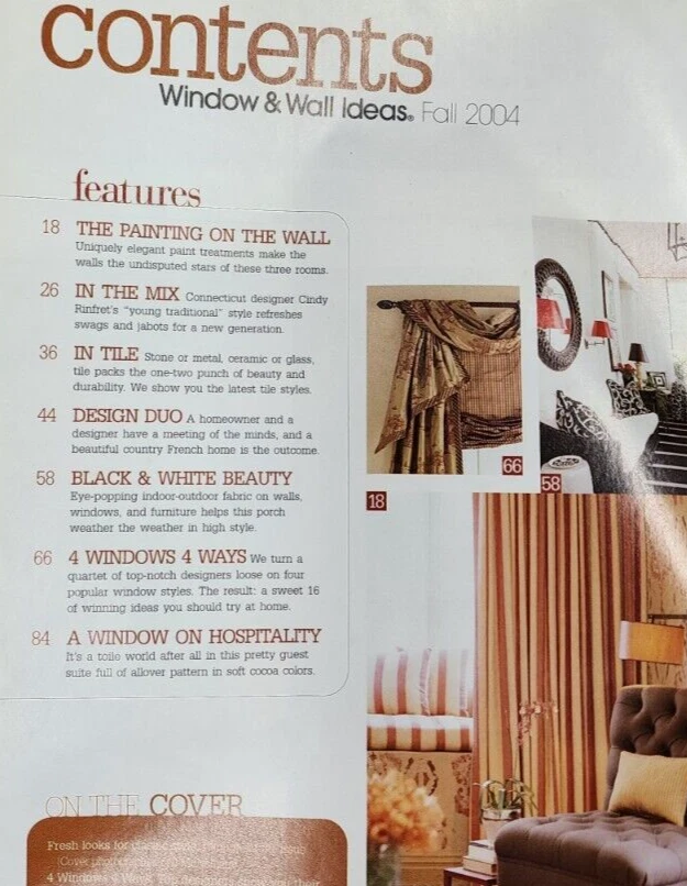 Better Homes and Gardens Window & Wall Ideas Fall 2004 Magazine is in very good condition with minimal wear. Please see photo of contents in this issue. Comes from a smoke free home. Fast shipping after purchase. Thank you for looking at this item. I combine shipping for multiple purchases. Reasonable offers are always considered. Feel free to send me a message at any time.