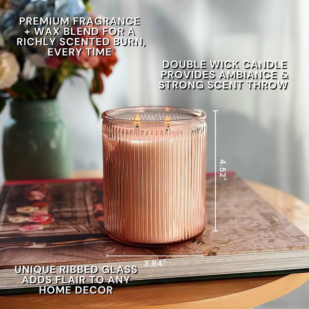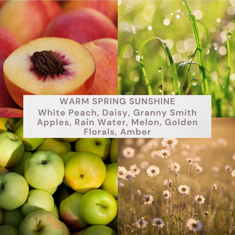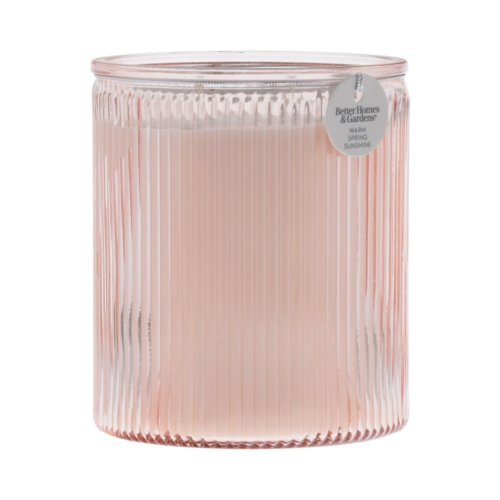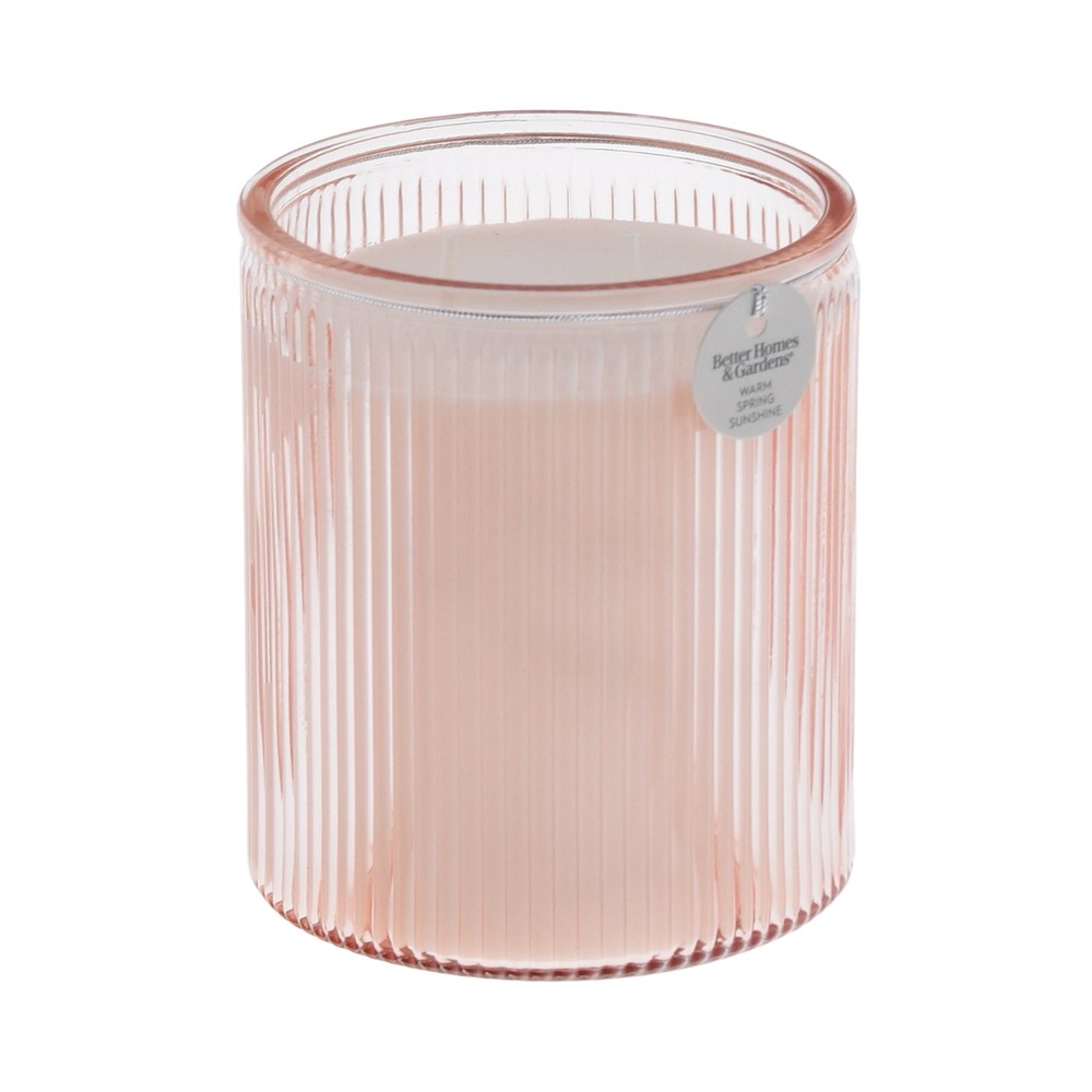 Better Homes & Gardens Warm Spring Sunshine Scented 2-Wick 17.1oz (480.77 g) Ribbed Jar Candle - Emitting a warm, golden light, this candle fills your space with an indulgent fragrance. Notes of White Peach, Daisy, Granny Smith Apple, Rain Water, Melon, Garden Florals & Amber create a delightful atmosphere. The ribbed glass jar houses a paraffin wax blend ideal for various rooms and décor styles. Crafted with care, this candle features an embossed ribbed glass design with a 2-wick design for a consistent, pleasant burn experience. Its versatile, contemporary style seamlessly integrates with any décor. On Apr 30, 2025 at 01:42:43 PDT, seller added the following information: