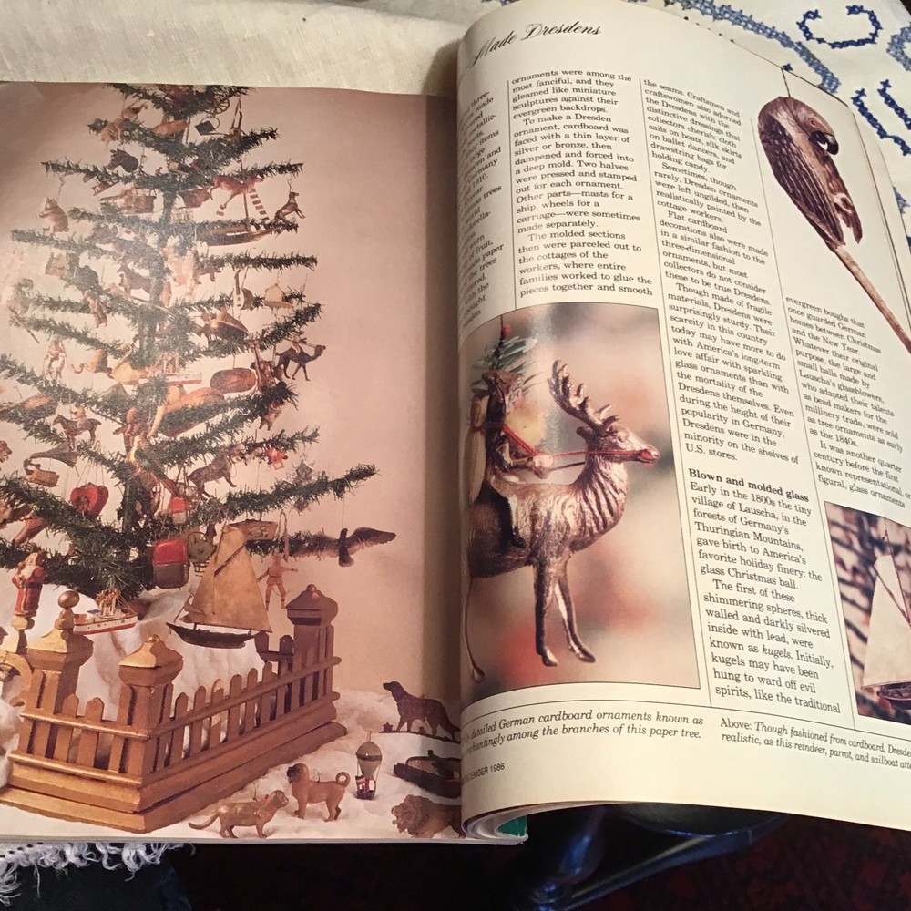 Nice Christmas issue magazine from 1986. Has articles on old feather trees and ornaments and many on decorating. I combine on shipping and am cleaning my attic out of my older magazines....