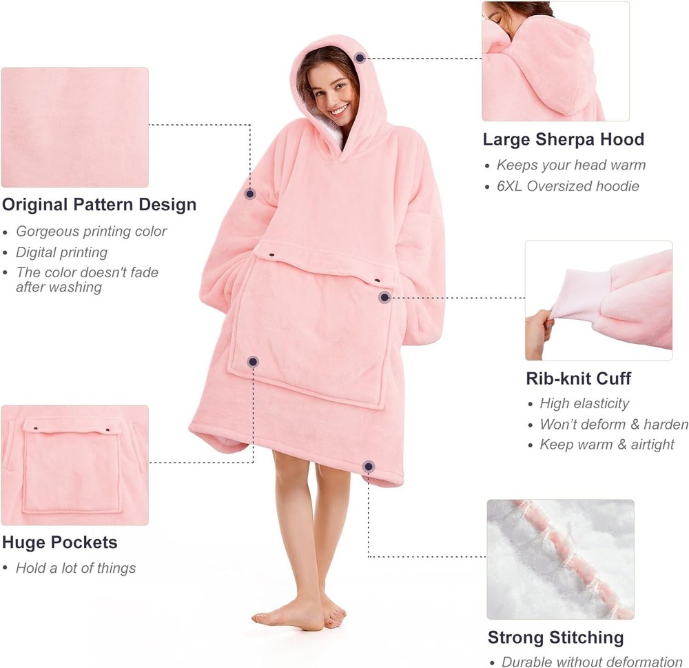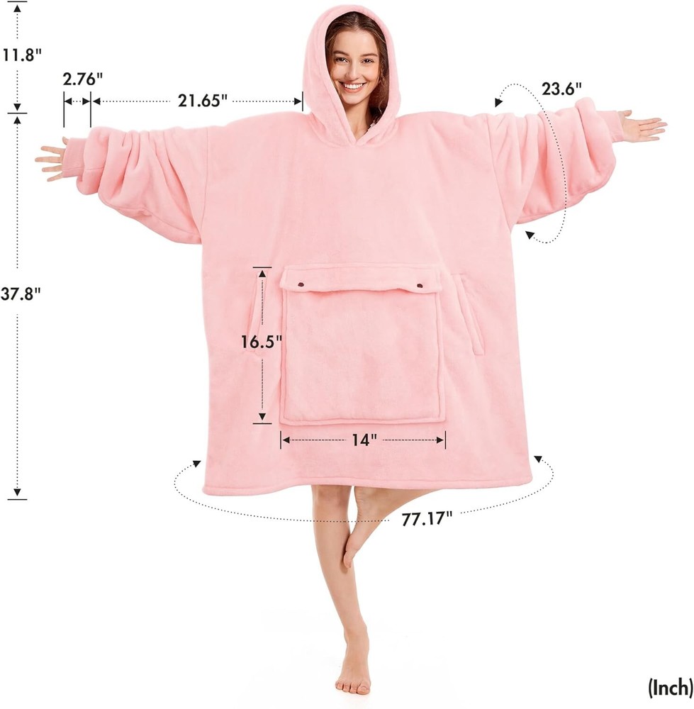 This oversized hoodie blanket is the perfect addition to your cozy collection. Crafted from premium sherpa fleece, it guarantees warmth and comfort. The beautiful pink color adds a pop of vibrancy to your wardrobe, and is suitable for both women and men. With a regular size fit and one-piece design, this hoodie blanket is an excellent choice for lounging at home or snuggling up during chilly nights. Its department is specifically for women, and it falls under the clothing, shoes & accessories category, women's clothing, intimates & sleep, and sleepwear & robes. Order yours today and experience ultimate comfort. Blanket Hoodie women & Man,Premium Sherpa Fleece Oversized Hoodie Blanket With Giant Pocket for Women,Super Cozy Big Wearable Blanket Hoodie Pink