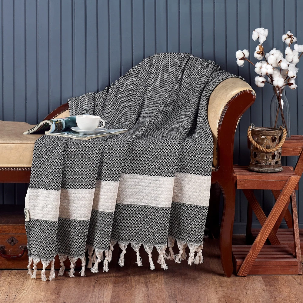 Blanket, Vintage Boho Rustic 100% Cotton Super Soft 63"x90" (160 cm x 230 cm) Twin Size,Adult Turkish Muslin Light, Cozy Couch Bedcover Twin Blankets, Black Product Details Size: Twin (63”x90”) Color: Black Brand: Aegean Concept MPN: Does not apply UPC: Does not apply EAN: Does not apply Material: Cotton Color: Black Brand: Aegean Concept Special Feature: Breathable Style: Country Rustic Material: Cotton Color: Black Brand: Aegean Concept Special Feature: Breathable Style: Country Rustic Blanket Form: Comforter Age Range (Description): All Product Dimensions: 90"L x 63"W Theme: Vintage Pattern: Geometric Product Care Instructions: Machine Wash Size: Twin (63”x90”) Fabric Type: 100% Cotton Unit Count: 1.0 Count Number of Items: 1 Item Weight: 2.4 Pounds Fabric Warmth Description: Lightweight Sport: Camping Manufacturer: Aegean Concept Item Weight: 2.4 pounds Date First Available: April 23, 2023 Elevate your bedroom with this versatile twin-sized boho blanketideal for layering or as a rustic centerpiece for your bed. Made from 100% organic cotton, this large, breathable queen blanket is eco-friendly, sustainable, and perfect for clean, healthy living. Lightweight Yet Warm - Designed to keep you warm during winter and breathable in summer, this versatile blanket is ideal for all-season comfort. Its soft, fuzzy and knitted texture makes it a plush and comfy choice for any room or outdoor setting. Perfect Holiday Gift An ideal housewarming, Christmas, or travel gift for women and men alike, this Boho cotton blanket adds warmth and charm to any living space. Easy to Maintain - Machine washable and quick-drying, this blanket offers hassle-free care and long-lasting softness. Its low-maintenance design makes it a practical choice for busy households.
