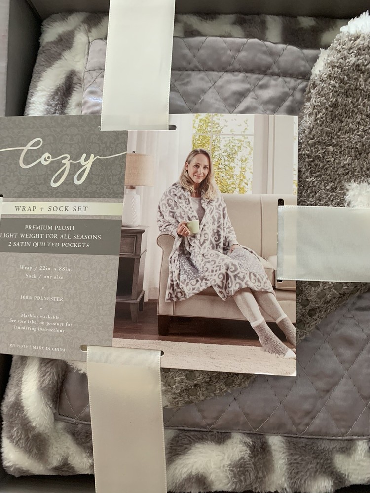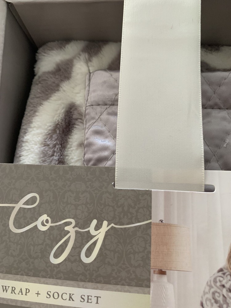 COZY. Blanket WRAP & SOCK SET..GRAY..NEW IN BOX.