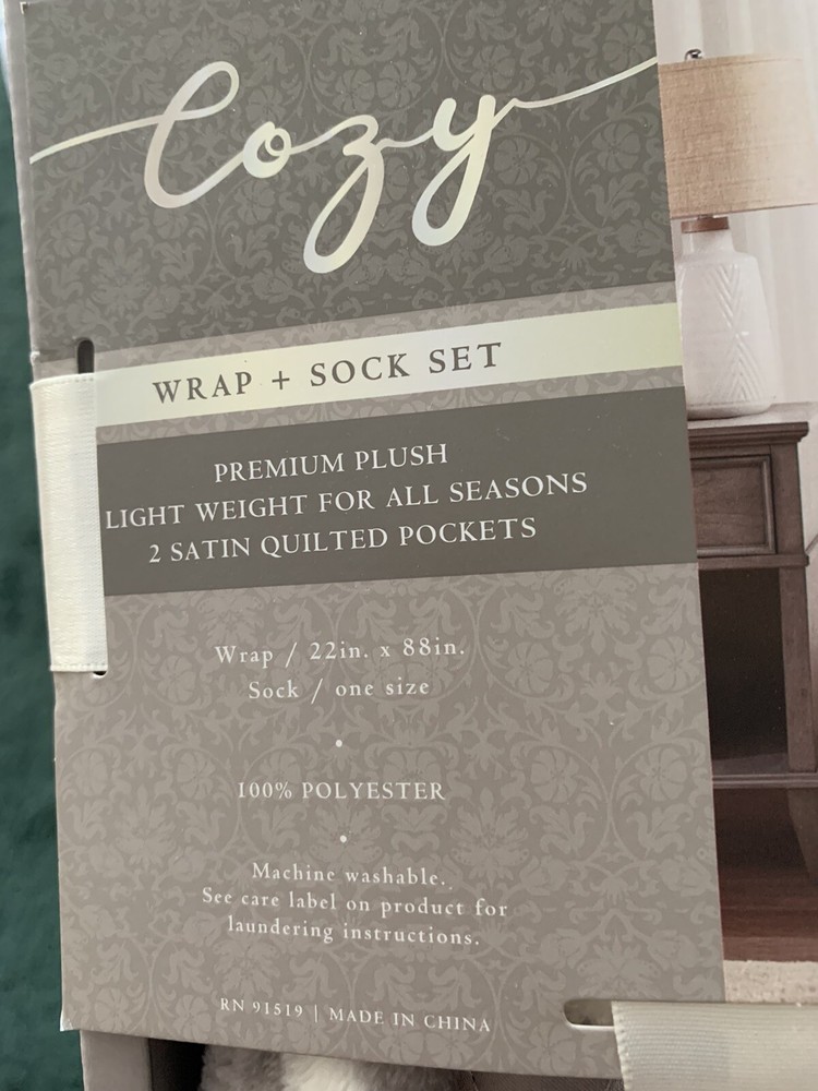 COZY. Blanket WRAP & SOCK SET..GRAY..NEW IN BOX....