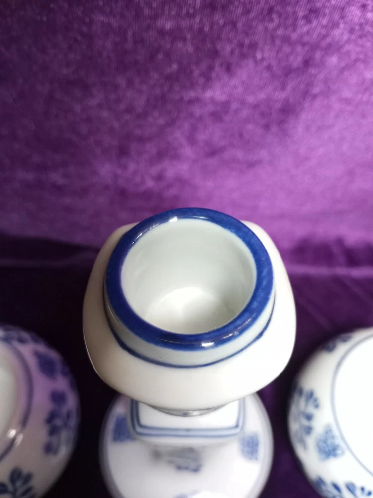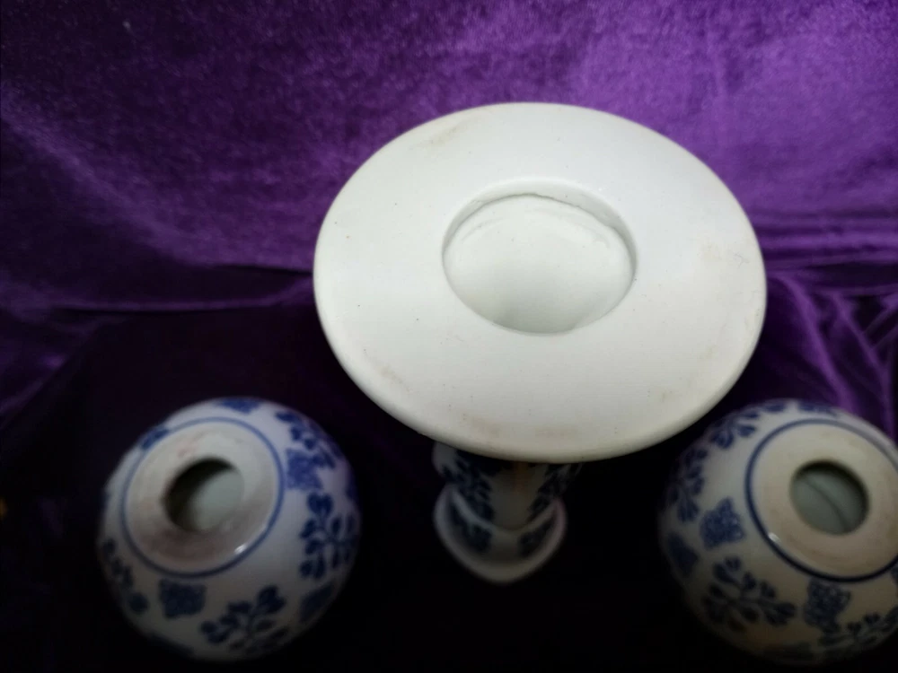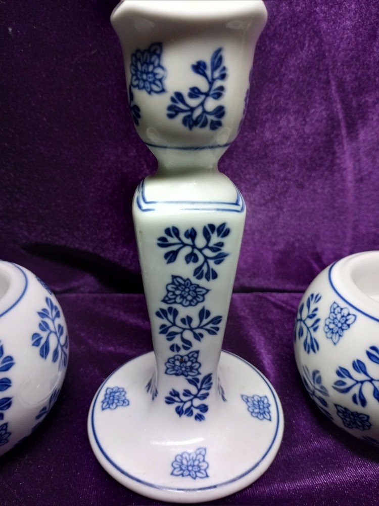 This set of sticks are real nice. 2 Tealight 1 Taper Holder. One tealight print is a tad darker than the other one. Nothing major. Tealights 2 5/8'' H Stick is 6 1/4'' H Ceramic 106...