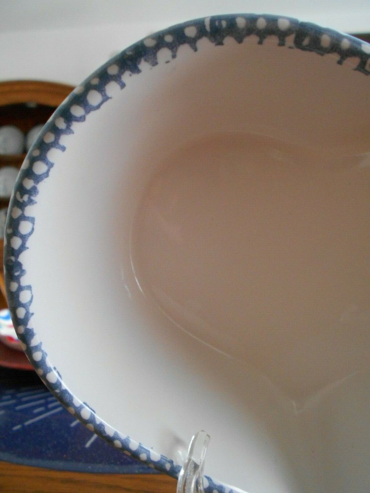 Hi! The details r listed above for this Blue Hearts Nesting Mixing Bowl 7 3/4" W Jay Import Stoneware White Blue Sponge ! Again, this is in excellent condition, no chips, cracks, utensil marks, or crazing! I may have more of these! Please ask! Also , I have several other pieces in this pattern! Please ask! I combine shipping too! A s u may know, combined shipping , is after the base pound, each pound that increases, the price per pound decreases! Also, as u may know , in any of my listings, on the right, about 1/2 way down, under "Seller information," u'll see a link "Visit Store." Press that, put the pattern name or keyword on the upper left. Do a search, & u'll see my other pieces in this pattern. I use bubble wrap (often doubled, sometimes tripled), I use packing peanuts (on all four sides, top & bottom), & use corrugated cardboard boxes! U may want to look at my other my listings! Additional pieces could be sold at a discounted price! I find it handy to have extras, not, only, in case of breakage (God forbid), but in a pattern which may be hard to find (& at these prices!)! Also, I use plates as liners under my fruit pedestal bowl as well as my coffee cup tree! The border shows & coordinates with any pieces which may be out! Please keep in mind , when ur comparing prices, I may have other pieces in this pattern (most times, several). Again, I combine shipping! Also , please let me know if u may be looking for anything in particular! Any questions, please ask (Don't be shy!)! Thx! P.S.: Also , I give a 10% shipping discount! P.P.S.: Though my listing states up to three (3) days to ship, I, often, ship the same day! If u'd like same day shipping, please let me know. I'll do my best! Yet another post script : Please WAIT to pay! The shipping calculator, I'm told by ebay, is an estimate when buying multiple pieces. Please buy it now. There should be a button to “request total” on the upper right. Then, I'll make sure the invoice is accurate.