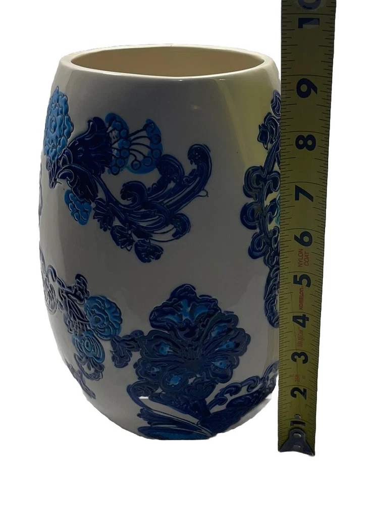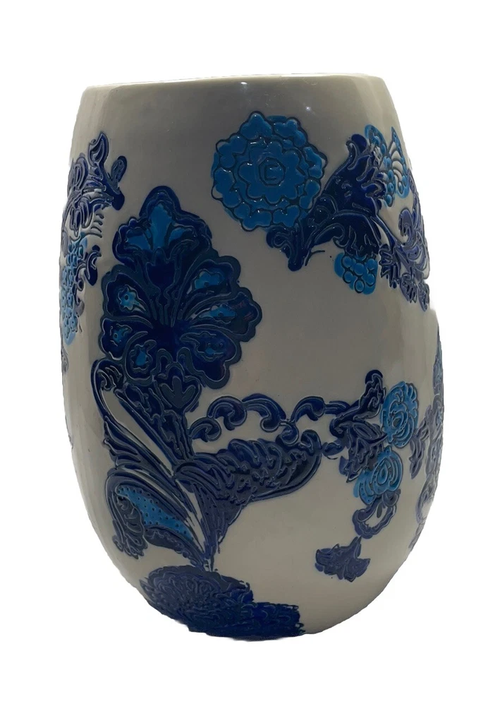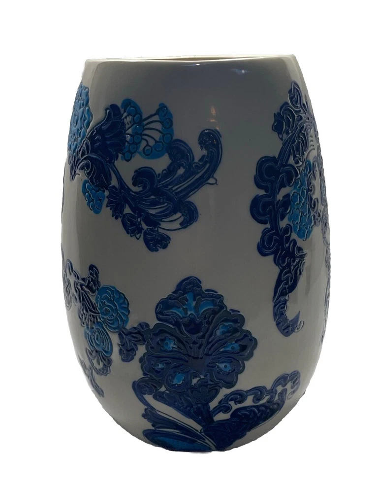 This beautiful table vase by Hills Imports features a stunning floral pattern in shades of blue and ivory. The jar shape and decorative style make it a perfect addition to any home décor. Made of high-quality ceramic, this vase is built to last and will add a touch of elegance to any room. Whether you're a fan of floral design or simply looking for a statement piece, this vase is sure to impress. K1