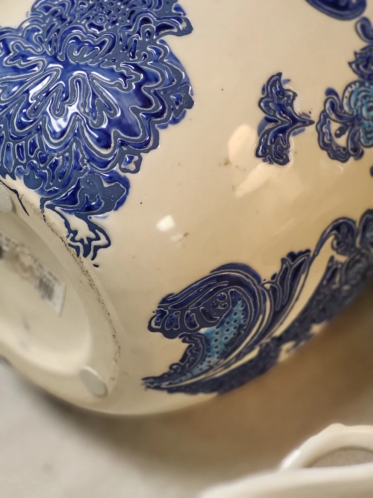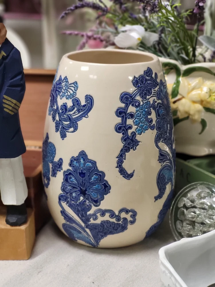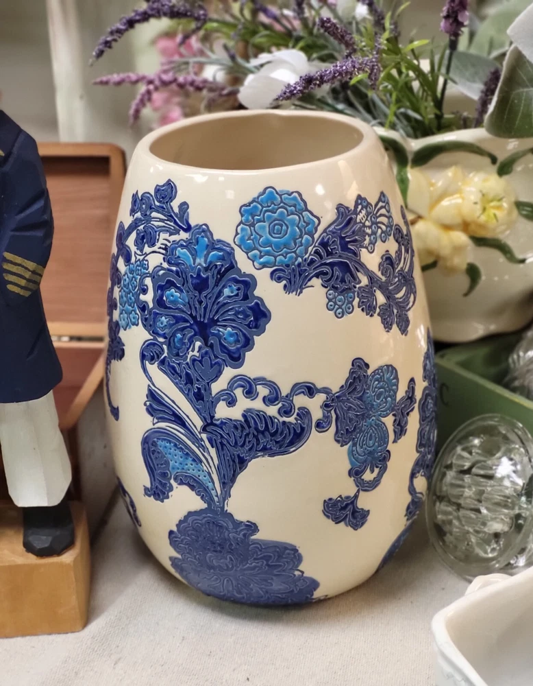 This Delft Design Blue Flower Ceramic Vase is in excellent condition. No chips or cracks. Approximate Dimensions: 9"T x 5-1/2" in diameter (5" opening). NOTE: Preowned items, by nature, are likely to carry various marks or indications of their age. We make every effort to photograph and describe items to indicate all features and characteristics as clearly as possible, but please contact us if you have questions or need additional pictures. Slight color variations may occur due to lighting and computers. We clean each item but do not deep clean them therefore they may require cleaning before use or display. All items are in used condition and are sold as is. Feel free to contact us if you have any questions before purchasing. SHIPPING NOTE: We use Ebay calculated shipping. We do not determine postage pricing, nor do we make any profit on postage. All items are boxed and weighed prior to listing and then Ebay calculates the postage based on your address. We will combine packaging when more than one item is purchased (when size allows). If the calculated postage seems excessive or you would prefer a different or faster method of shipping, please contact us prior to purchase and we'll see if there are other options.