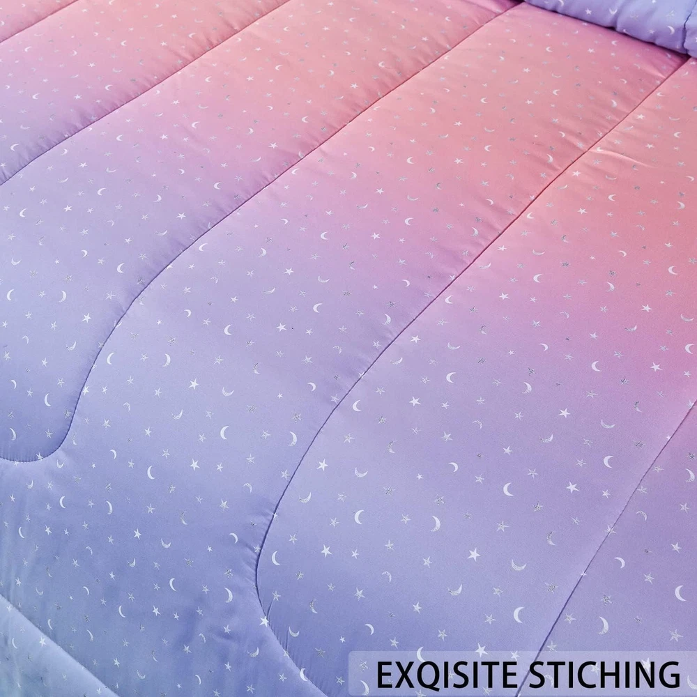 This comforter set is a dream! The ultra-soft microfiber feels luxurious, and the metallic star-and-moon design adds a magical touch to my bedroom. It’s lightweight yet cozy, perfect for year-round comfort. The stitching is sturdy, and the included pieces make it a great value. Washes well without fading—absolutely love it!