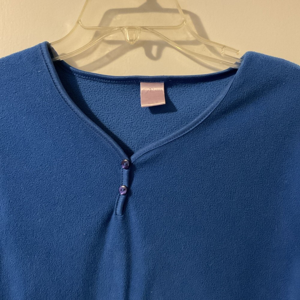 Nice, lightly used, cozy, blue plush top For sleep or casual wear No tears...