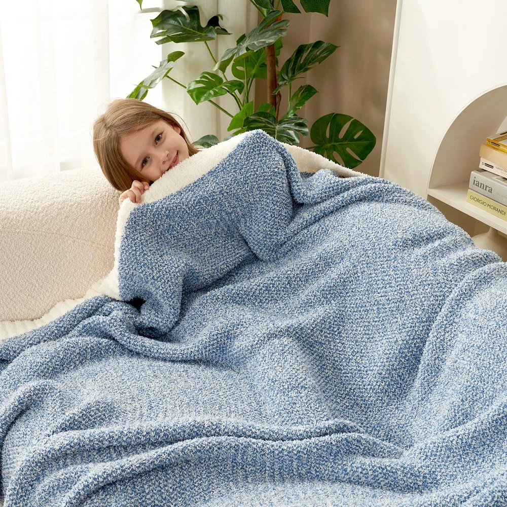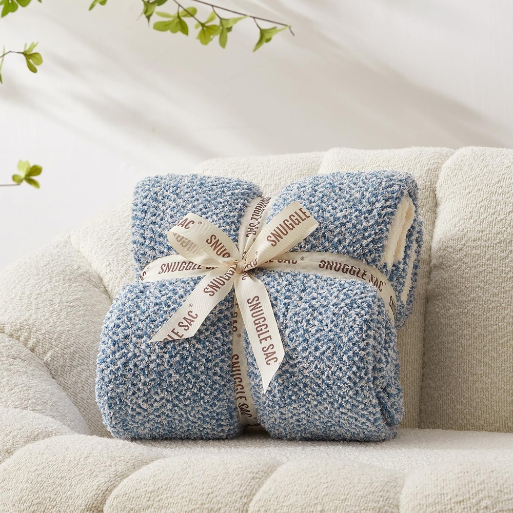 Heather Throw Blanket made of Luxrious Feather Yarn, giving you an exceptional softness. So very very soft and comfortable.This blanket is a delightful addition to any home, offering both comfort and style in one cozy package.The blanket is made from high-quality micrifiber yearn that feels incredibly plush against the skin. Whether you're curling up on the couch, reading a book, or watching TV, this blanket provides a warm and soothing experience. Quality Material - The blanket is knitted with luxurious microfiber fabric, super soft, durable and warm, ideal for sofa, couch, bed, car and airplane when snuggling or relaxing. The blanket is certified with STANDARD 100 by OEKO-TEX,no harm to human beings or your fuzzy friends, ultra soft and permanently non-shedding, antistatic and breathable, giving you a cloud like feeling . Giftable and Decorative - Our soft knitted blanket comes in multiple sizes and is an excellent choice for gift-giving, such as Christmas, Thanksgiving, New Year, etc. The blanket's fluffy fiber adds a cozy feel and makes it the ideal way to add elegance and comfort to your couch, sofas, beds, armchairs, or living room. Unique Heather Color Design - Combined with unique heather color knitting workmanship, the throw blanket looks exquisite and soft. Reversible heather color on both side. Enjoy the comfort and warmth year-round with this premium knitted throw. Multi-functional Use - Get cozy and lightweight with this extremely soft and warm blanket.You can use the blanket indoor and outdoor. You can use it as warm sofa blanket when watching TV Programs with your families. Snuggling with this blanket, you will always feel cozy and comfortable. You can also take the blankets to travel or for outdoor activities such as camping or picnics. Machine-washable and Tumble Dry - throw blanket is easy to wash and dry. It’s safe to wash in a machine with cold water and a gentle cycle. To dry, you can use a mild circulation and no heat tumble dryer. It’s recommended to wash before the first use.