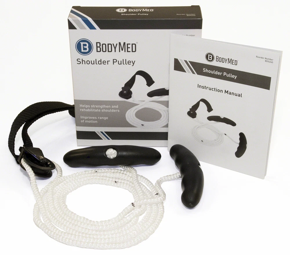 BODYMED PREMIUM SHOULDER PULLEY – AT-HOME REHAB SYSTEM – OVER-THE-DOOR PHYSICAL THERAPY EQUIPMENT – RECOMMENDED FOR SHOULDER EXERCISES, STRETCHING, & RECOVERY AFTER SURGERY The BodyMed Shoulder Pulley is a complete over-the-door system for shoulder exercises after an injury. By using a pulley for shoulder rehab, you can lubricate the shoulder joint, which may help with stiffness and improve range of motion. This shoulder pulley is not made with natural rubber latex and is constructed of solid metal coated with vinyl. The durable web strap and anchor pulley are built to withstand shoulder exercises at home or with a chiropractor or physical therapist in a commercial fitness or rehabilitation setting BodyMed Premium Shoulder Pulley – at-Home Rehab System – Over-The-Door Physical Therapy Equipment – Recommended for Shoulder Exercises, Stretching, and Recovery After Surgery BodyMed Manufacturer approved listing Active Recovery Essentials only offers products that come straight from the manufacturer and are sold new in the box with a full mfg warranty REHAB SUPPORT. The BodyMed Premium Shoulder Pulley is a complete over-the-door system for shoulder exercises after an injury. By using a pulley for shoulder rehab, you can lubricate the shoulder joint, which may help with stiffness and improve range of motion. ALLERGY FRIENDLY. This shoulder pulley is not made with natural rubber latex and is constructed of solid metal coated with vinyl. PROFESSIONAL QUALITY. The durable web strap and anchor pulley are built to withstand shoulder exercises at home or with a chiropractor or physical therapist in a commercial fitness or rehabilitation setting. EASY TO USE. The BodyMed Premium Shoulder Pulley can be used with any standard door while sitting, standing, or lying down. The included instruction manual has step-by-step photos to guide you. ALL-IN-ONE. The BodyMed Premium Shoulder Pulley comes with a web strap, door anchor, ergonomic handles, tension rope, and an illustrated exercise guide. The braided rope features markings to measure progress, and the handles are custom molded for increased comfort, all pre-assembled and ready to use. New in box BODYMED PREMIUM SHOULDER PULLEY – AT-HOME REHAB SYSTEM – OVER-THE-DOOR PHYSICAL THERAPY EQUIPMENT – RECOMMENDED FOR SHOULDER EXERCISES, STRETCHING, & RECOVERY AFTER SURGERY The BodyMed Shoulder Pulley is a complete over-the-door system for shoulder exercises after an injury. By using a pulley for shoulder rehab, you can lubricate the shoulder joint, which may help with stiffness and improve range of motion. This shoulder pulley is not made with natural rubber latex and is constructed of solid metal coated with vinyl. The durable web strap and anchor pulley are built to withstand shoulder exercises at home or with a chiropractor or physical therapist in a commercial fitness or rehabilitation setting. The BodyMed Shoulder Pulley can be used with any standard door while sitting, standing, or lying down. The included instruction manual has step-by-step photos to guide you. The BodySport Shoulder Pulley comes with a web strap, door anchor, ergonomic handles, tension rope, and an illustrated exercise guide. The braided rope features markings to measure progress, and the handles are custom molded for increased comfort, all pre-assembled and ready to use. ABOUT YOUR AUTHORIZED RESELLER Free Standard Shipping & Returns Located in the United States New Condition Credit Cards & PayPal About Active Recovery Essentials We are proud that we supply health and wellness products allowing you to recover faster and live healthy and fun lives. Why choose Active Recovery Essentials to fulfill your nutritional supplements, beauty accessories, workout equipment, muscle recovery products and more? Because we know the healthy living markets more than the competition—we’ve been working with top fitness, beauty and health and wellness brands for over 60 years. Returns Policy After receiving the item, contact seller within - 14 days Refund will be given as - Money back or replacement (buyer’s choice) Seller pays for return shipping - Seller pays for return shipping Restocking Fee - 10% restocking fee may apply Customer Satisfaction Our number one goal is for you to be satisfied with your purchase from us. Shipping Terms Free Standard Shipping (UPS Ground) To the United States