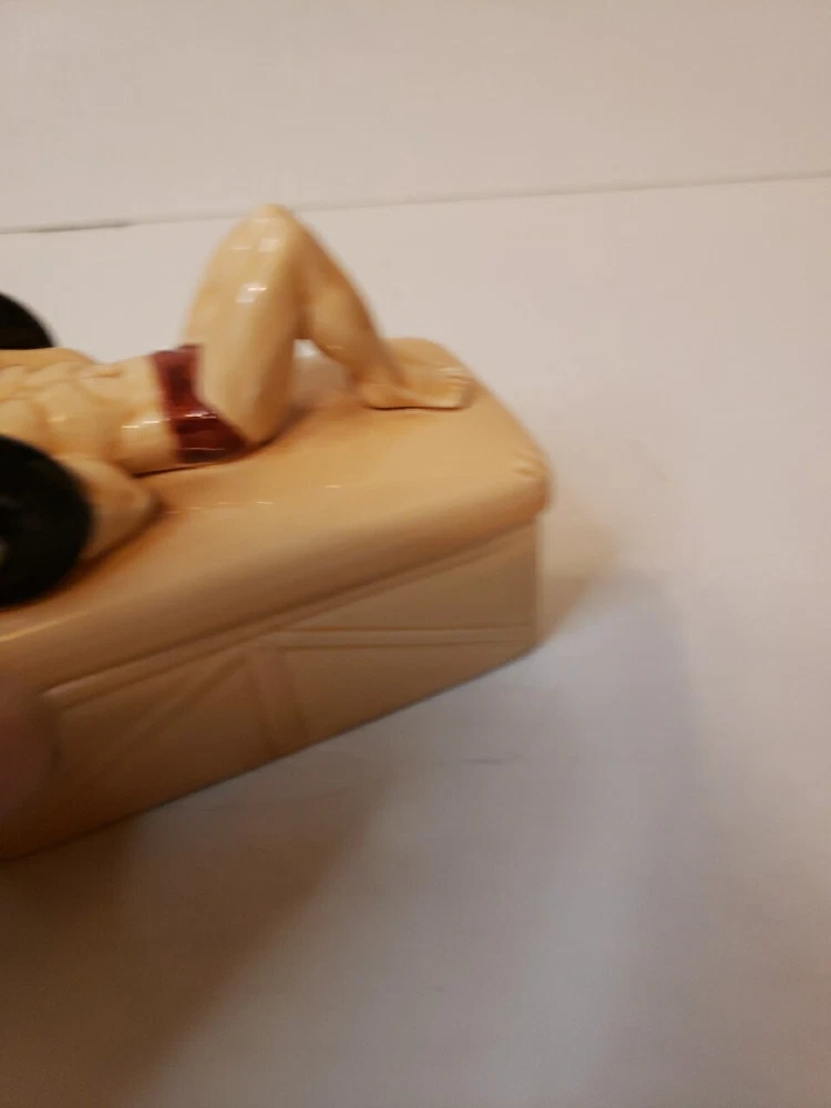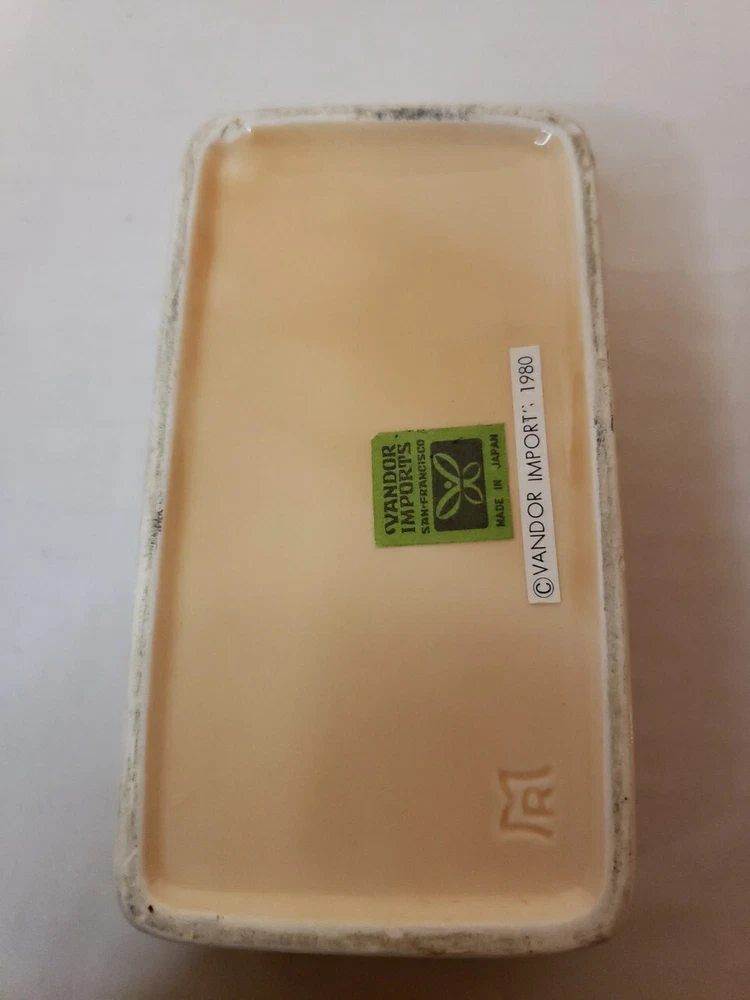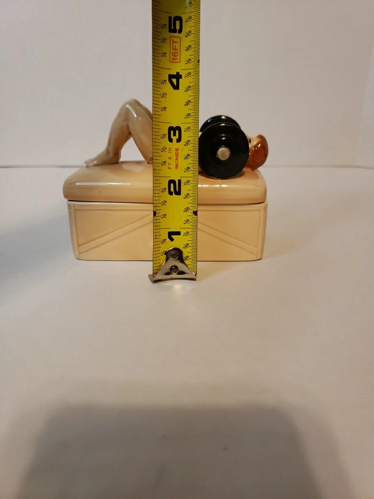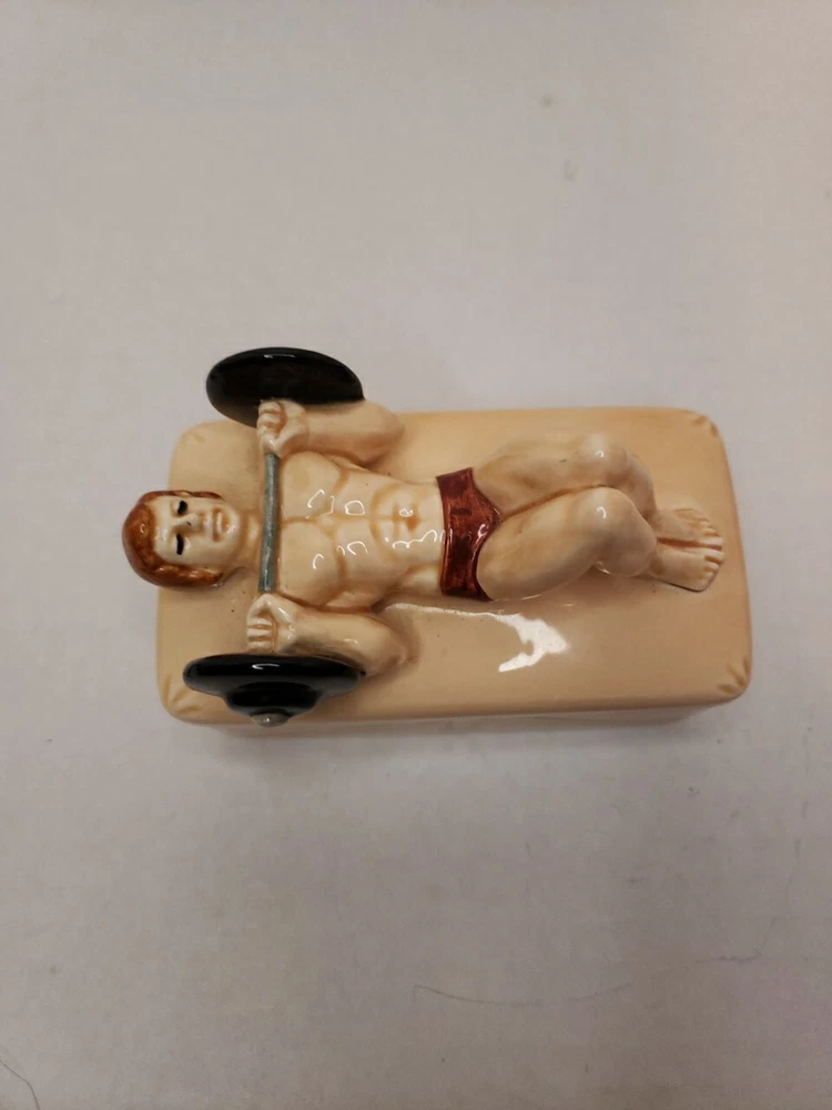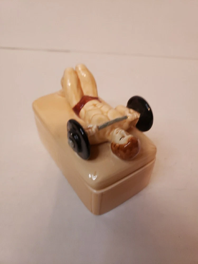 This vintage ceramic trinket box is a must-have for any bodybuilding enthusiast. Made in Japan in the late 20th century by Vandor, it features a rectangular shape and beige color with a bodybuilding theme. Measuring 4.5 inches in length, 3.5 inches in height, and 2.5 inches in width, it is a medium-sized box that can hold all occasions worth of items. The box comes in its original packaging and is an original piece from the 1980s. It is perfect for storing small items and can be a great addition to any collection. Get your hands on this unique bodybuilding ceramic trinket box today!