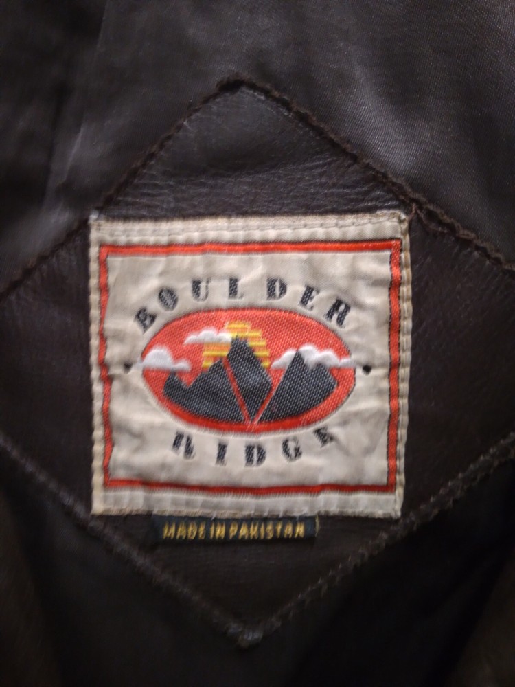 This vintage Boulder Ridge bomber jacket is a must-have for any fashion-forward man or woman. Crafted from high-quality leather, this jacket features a zip and snap closure, spread collar, and elastic waist for a comfortable fit. The jacket is windproof and wind-resistant, making it perfect for travel, casual outings, and workwear.The jacket has a short length and is lined with polyester for added warmth and comfort. It also has pockets for storage and insulation made of polyester. This jacket is perfect for all seasons, including winter, fall, and spring. Add a touch of style to your wardrobe with this jacket's solid pattern and vintage look.