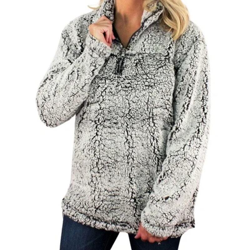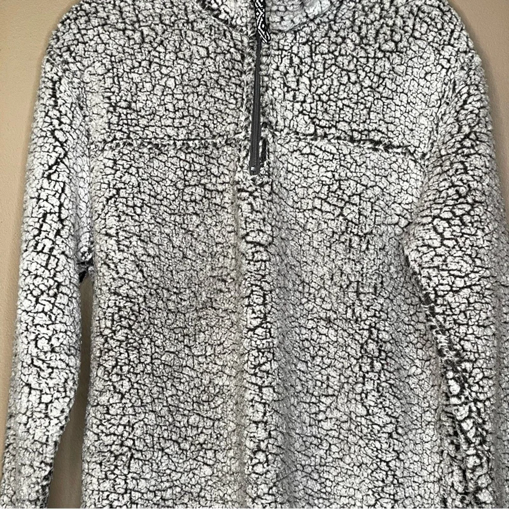 <![CDATA[<div>How can plush Sherpa fleece make you feel? Toasty warm. Really comfortable. Adventure ready. Styled with a half-moon back yoke and twill taping inside neckline. Zip to the top or keep it relaxed with the collar open. However you wear it (or layer it), you'll be glad to have this handy during the cold season. Please be aware that due to lighting, colors may appear lighter or darker than the true color of the item. Size: Large (see brand's size chart in photos) Color: Frosty Gray (garment dyed for unique character; colors may vary) Materials: 100% Poly Sherpa Condition: Excellent used condition. Minimal signs of wear throughout. No flaws. Smoke free, pet friendly home. winter, cold weather, practical, casual, basic, outdoors, neutral, lounge, relaxed, plush, layering, long sleeves, comfortable, fuzzy, gorpcore, camping