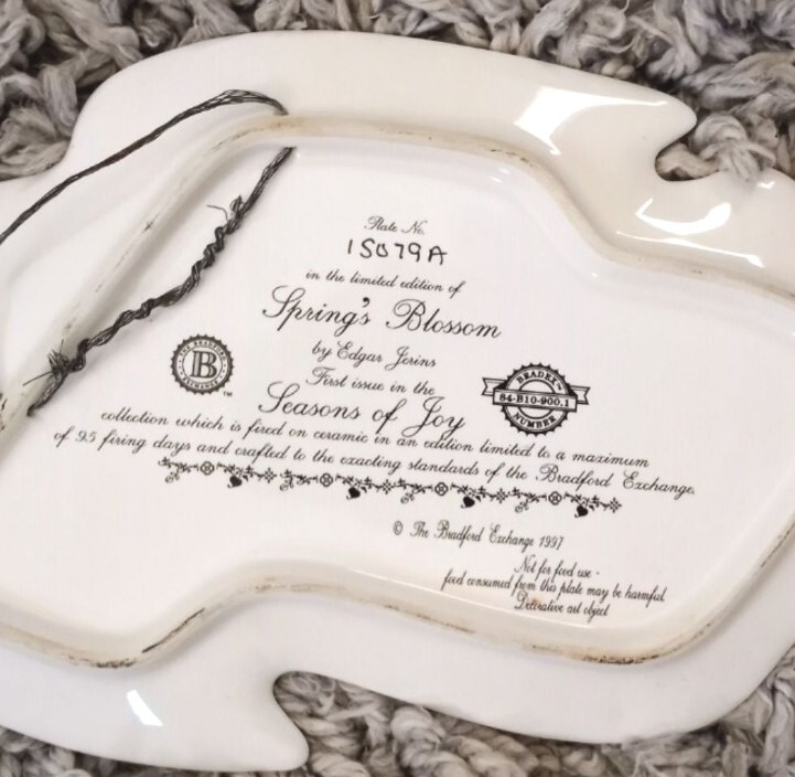 The Bradford Exchange Spring's Blossom Angel Plate 1997 Edgar Jerins 9" Trinket Dish is a vintage collector plate made of porcelain and ceramic. It features a decorative design with a multicolor theme of angels and spring blossoms. The plate has a diameter of 9" x 5.5" and was produced in the late 20th century in an art pottery style. It also has a date-lined feature and was manufactured between 1990-1999. This plate is perfect for all occasions and is a great addition to any decorative collection. Excellent pre-owned condition