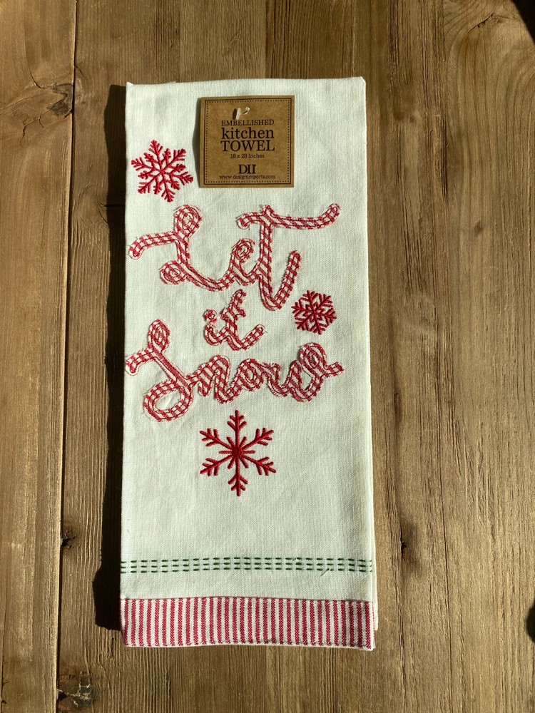 Brand new 18"x28" Kitchen towel with embellished Let it Snow and embroidered snowflakes. Very cute, would make a nice gift! 100% cotton Free Shipping! Please check out my other listings to find more c...