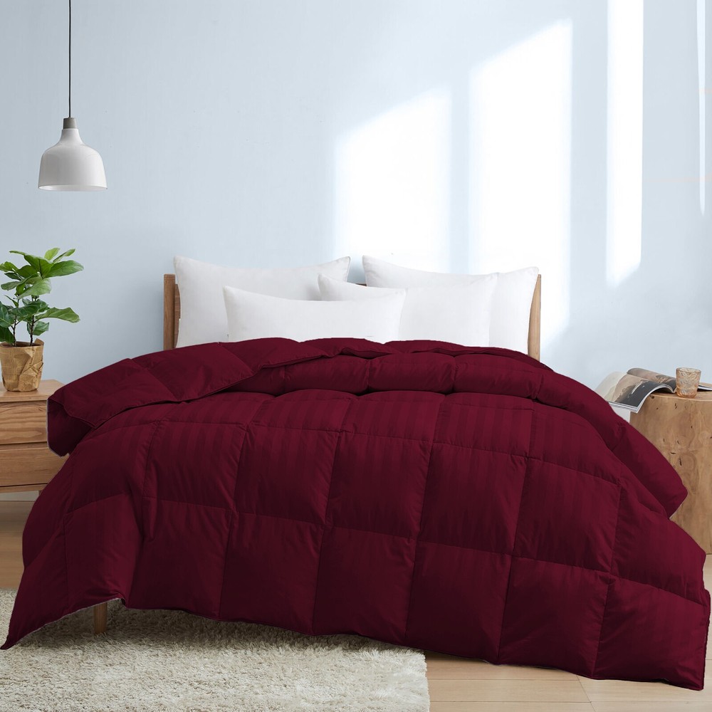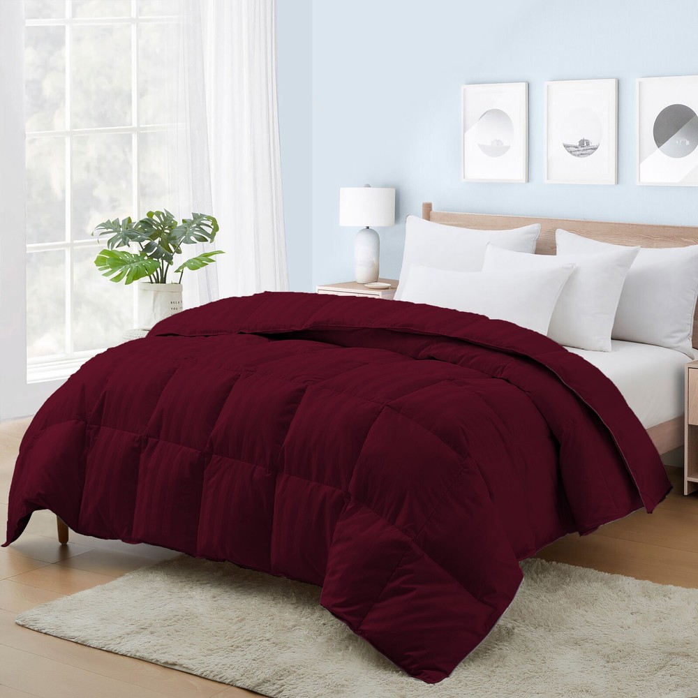 Luxury Egyptian Cotton Down Alternative Comforter Branded Wine Stripes Cal King