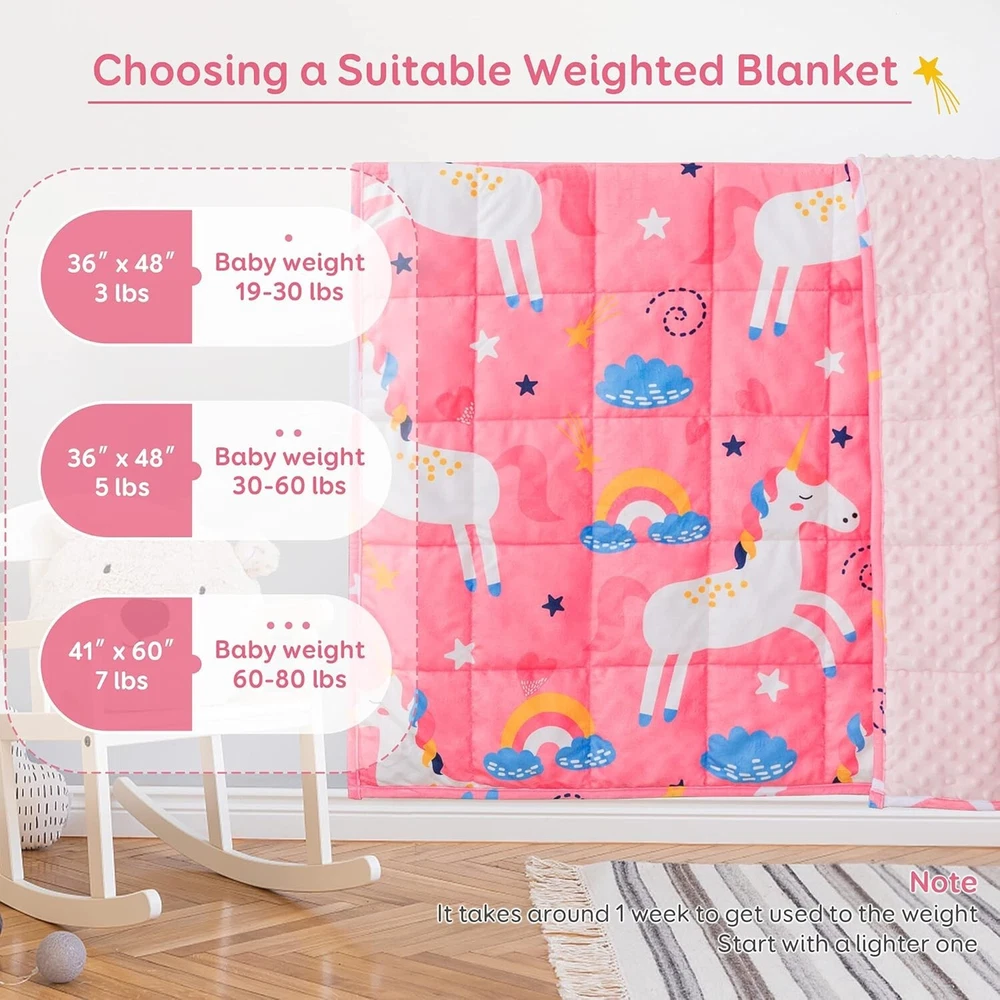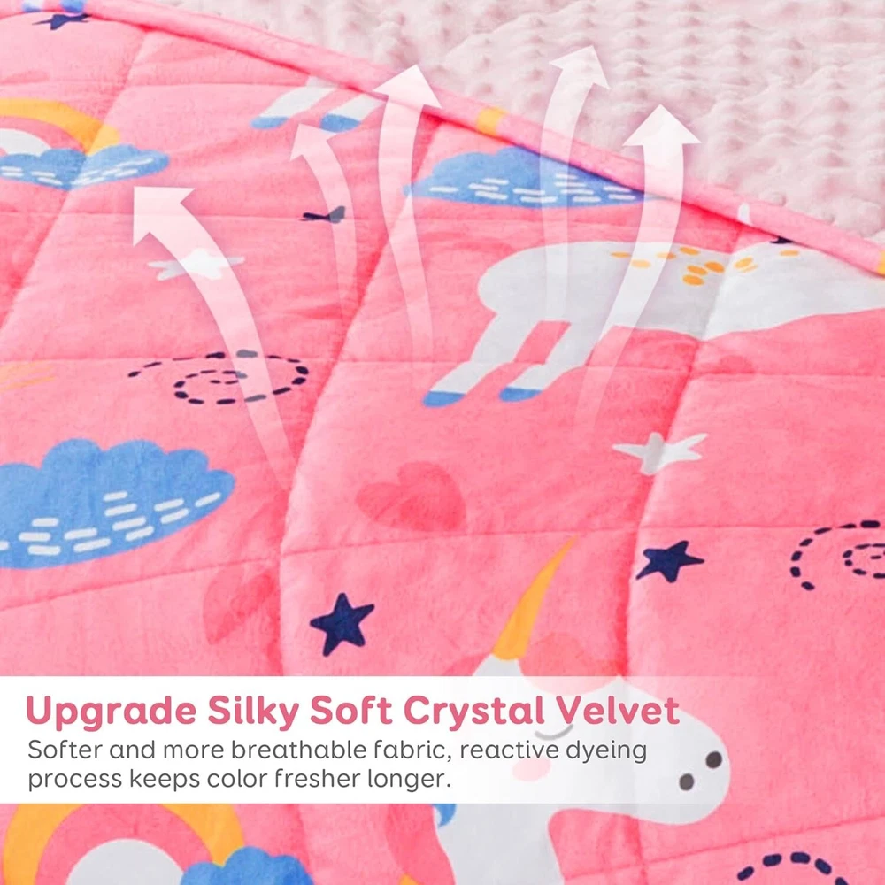 Breathable Crystal Velvet Weighted Blanket for Kids - Cozy 36x48 inch Size ‹ › ‹ › ‹ › ‹ › ‹ › ‹ › ‹ › ‹ › ‹ › Breathe Easy with Our Crystal Velvet Weighted Blanket for Kids Cozy 36x48 inch Size Features: 2 in 1 Reversible Design: Experience the luxury of a silky-soft crystal velvet top paired with a minky dimple dot bottom. This unique combination not only provides unparalleled softness but also nurtures a sense of security with its soothing textures. Cozy for All Seasons: Cuddly and breathable, this weighted blanket is perfect for use in any season, making it an ideal companion for your little one. Quiet Comfort: Like a gentle hug from mom, our blanket features properly distributed pressure for a tranquil night’s sleep while the minky dots stimulate positive moods. Safe and Durable: Constructed with 7 layers to prevent any leaks, the smaller 4 by 4 inch pockets with twin needle stitching keep glass beads securely in place, ensuring longevity even with daily use. Perfect Fit: Available in a variety of sizes and designed for different ages, it’s recommended to choose a blanket that equals about 10% of your child's weight for optimal benefits. Benefits: Enhances sleep quality with its comforting weight. Promotes a soothing and calming experience, ideal for children needing extra comfort. Encourages a peaceful night's sleep with quieter performance than typical weighted blankets. Easy to maintain and durable for active use. Why Choose Our Breathable Crystal Velvet Weighted Blanket? Transform your child’s sleep routine with the luxurious comfort and calming embrace of our Crystal Velvet Weighted Blanket. Its thoughtful design not only soothes but also nurtures, assuring parents that their little ones are wrapped in comfort. Invest in a blanket that marries quality, safety, and comfort, ensuring your child's sleep experience is both restorative and delightful. Don’t wait—let them snuggle in serenity tonight! Shipping Free & Fast Shipping - We offer free shipping to most of the USA with a normal delivery time of 3-7 days. However, due to the current situation, additional delivery time (up to 3 weeks) may be required for some items. Alternative Carriers - We may use alternative carriers (e.g. USPS, FedEx, UPS, etc.) to ensure your package arrives safely and on time. Due to the use of multiple carriers, we are unable to provide a tracking number automatically. Handling Time - Orders are processed and shipped within 1-2 business days of receiving cleared payment. Shipping Restrictions - Shipping to Alaska, Hawaii, Puerto Rico, Guam, and other US territories may incur shipping charges or delivery restrictions. Please contact us before ordering, or your order can be refunded/cancelled. State Restrictions - There may be restrictions based on your state of purchase. For example, certain items may not be shipped to California due to state regulations. Contact for Tracking Updates - If you require tracking updates or have any concerns about the delivery of your order, please feel free to contact us, and we will be happy to assist you. Return 30-Day Hassle-Free Returns - We want you to be completely satisfied with your purchase. If you are not, you can return the item within 30 days of receiving it for a full refund or exchange. Easy Return Process - To start a return, simply contact us and we will provide you with a prepaid return shipping label and detailed instructions. Restocking Fee - There are no restocking fees for returns. However, the buyer is responsible for return shipping costs if the return is not due to a seller's error. Refund Processing Time - Refunds will be processed within 5 business days of receiving the returned item in its original condition. Payment We accept all major credit cards, PayPal, and Apple Pay for your convenience. Your payment information is secure and encrypted to ensure a safe and seamless transaction. Please complete your payment within 3 days of purchase to avoid any delays in shipping. Feedback Your feedback is extremely important to us. We strive to provide the best products and customer service possible. If you are satisfied with your purchase, please take a moment to leave us a positive review. If you have any concerns or issues with your order, please contact us before leaving negative feedback. We are committed to resolving any problems and ensuring your satisfaction. Contact Us If you have any questions or concerns, please feel free to reach out to our customer support team. You can contact us through the eBay messaging system. We are available Monday to Friday, 9:00 am to 5:00 pm EST, and we will do our best to respond to your inquiry within 24 hours. Buy it now and enjoy a pleasant shopping experience! UPC: Not Set Item Length: Not Set Item Width: Not Set Unit Quantity: 5 Material: Velvet,Crystal Velvet Features: Breathable,Reversible,Weighted,Cuddly,Quieter,Pacifying Effect Theme: Cartoon Character: Not Set Department: Kids Care Instructions: Machine Wash,Tumble Dry,Do Not Iron Room: Bedroom Labels & Certifications: Not Set Brand: Unbranded Size: 36 x 48 in Type: Weighted Blanket Character Family: Not Set Color: Pink Unicorn Pattern: Cartoon MPN: Not Set Style: Modern Insulation: All Seasons Country/Region of Manufacture: Not Set Shape: Rectangular Closure Type: No Closure GSM (Grams per Square Meter): Below 150 Product Line: Not Set Thread Count: 200 or Less Drop Length: Not Set Model: Not Set Unit Type: lb Personalize: Not Set