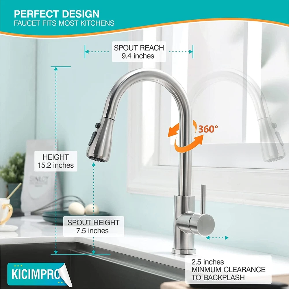 Store Categories Store Categories China Warehouse Shipment CN-Accessories CN-Basin Faucet CN-Bathtub Faucet CN-Kitchen Faucet CN-Shower Faucet CN-Shower Panel CN-Shower Set CN-Shower Head U.S. warehouse shipment Accessories Basin Faucet Bathtub Faucet Kitchen Faucet Shower Faucet Shower Head Shower Panel Shower Set Kitchen Faucet 2 UK warehouse shipment Accessories Basin Taps Bathtub Taps Kitchen Taps Shower Taps Shower Head Shower Panel Shower Set Shipment from German warehouse Other Product Certification Details Function: Kitchen Sink Faucet Feature:Swivel Spout Finish: Brushed Nickel Number of Handles: Single Handle Installation Holes: One Hole Faucet Total Height: 400 mm Spout Height: 225 mm Spout Length: 180 mm Valve Type: Ceramic Valve Faucet Body Material: Brass Faucet Spout Material: Brass Faucet Handle Material:Brass With 2 pipes for cold and hot water. The installation hole is 3.5-4.2cm (1.38"-1.65") Shipment & conditions Payment Method Contact us Feedback Shipment & conditions Usually shipment can be arranged within 2working days after receiving payment. Each item can be shipped out if payment received before 17:00 each day. We usually ship via Fedex , UPS, USPS. We have warehouses in many locations in the United States, and will use the warehouse closest to you for shipment. We ship to the address in the order.Therefore, please make sure that the address you fill in when purchasing is correct. After the product ships, the estimated delivery time in the order is the best-case scenario. We cannot guarantee delivery within the estimated delivery time. Because logistics and transportation have great uncertainty. The buyer is responsible for returning the product if it is not a quality problem. Payment Method Paypal, Google Pay, VISA, AMEX, etc. Contact us Shipping damage has to be reported within 5 business days of which the product was delivered. If you have any questions, please be free to contact with us,we will answer your questions ASAP. We will answer your question via email, please check your email for the answers. Feedback I describe items as well as I can. If I have missed something, please let me know. Please e-mail me before leaving feedback if you are unhappy with your item, so we can work it out. International Buyers – Please Note: Import duties, taxes, and charges are not included in the item price or shipping cost. Urheberrecht©Xifumixertaps