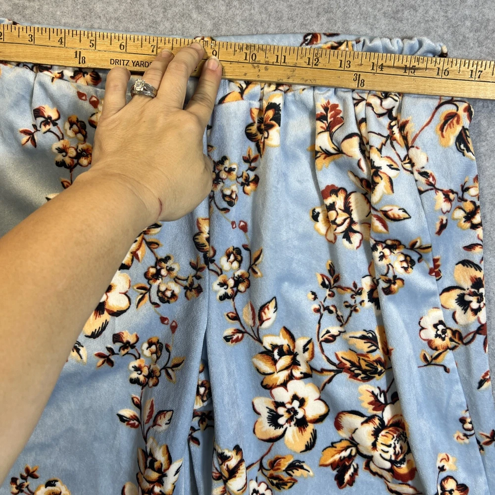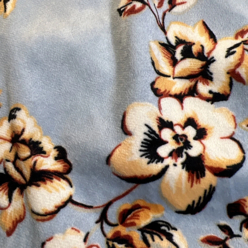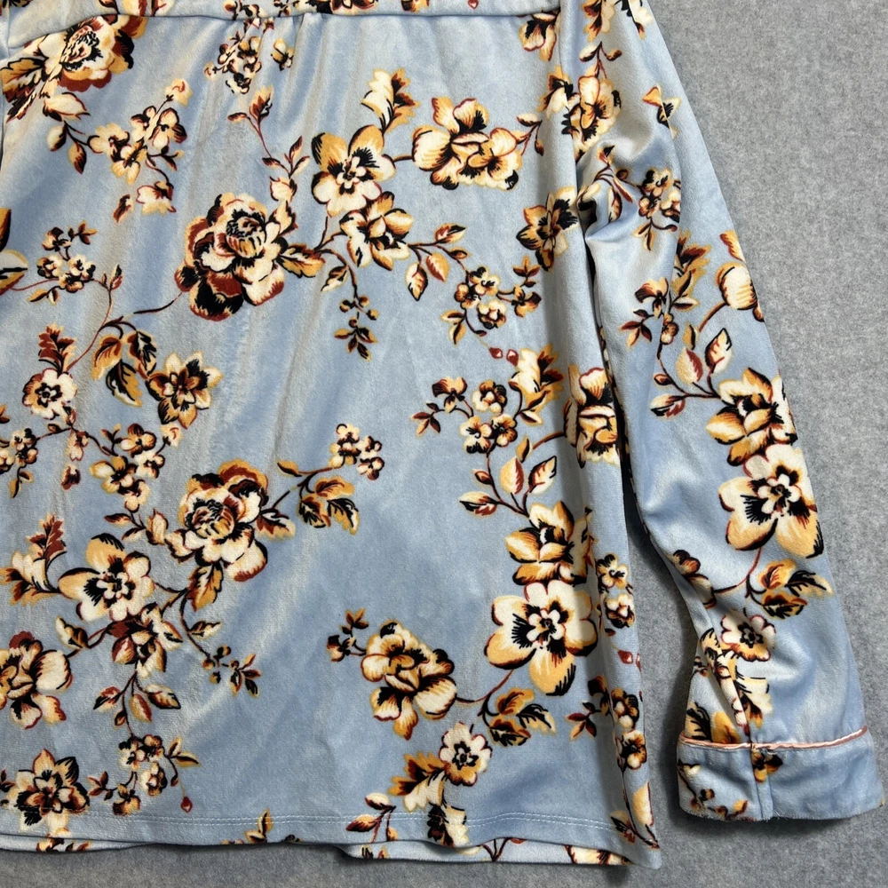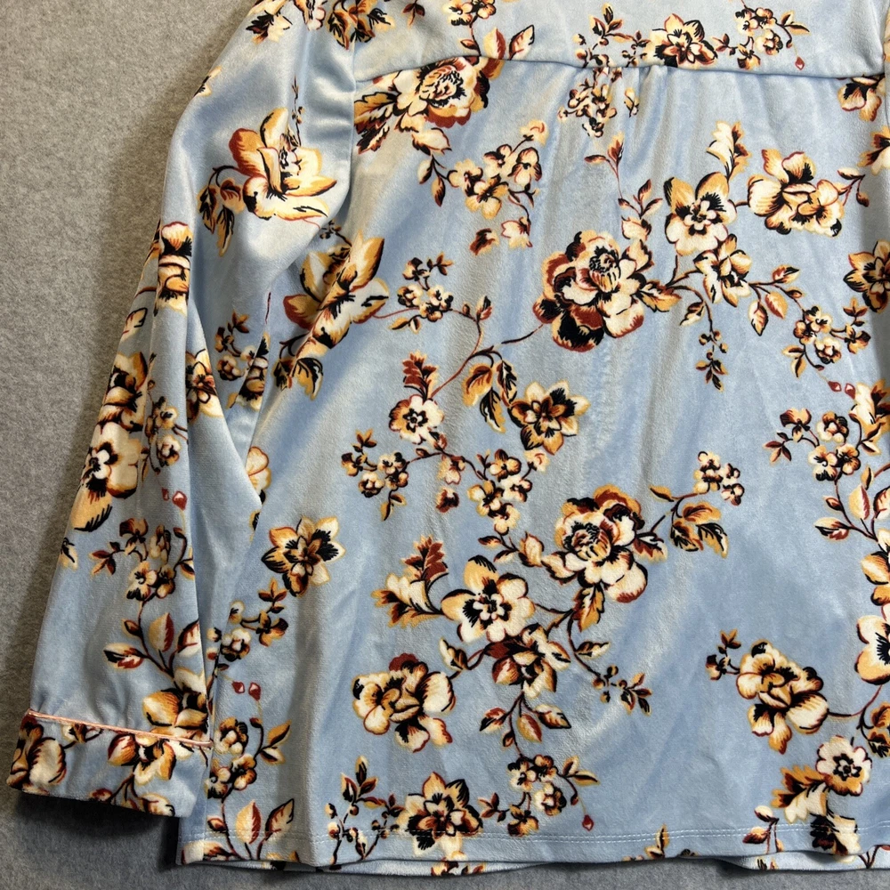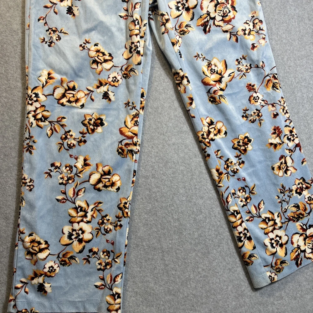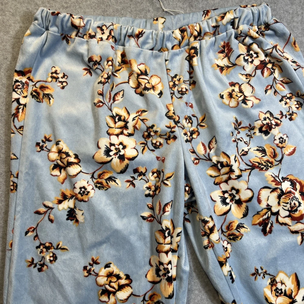 Elevate your sleepwear game with this cozy and comfortable Bumble B. pajama set. The set includes a long sleeve top with a beautiful floral pattern and button closure, paired with matching velvet pants. The light blue color and classic style make it a perfect addition to your sleepwear collection for winter, fall, or spring. Crafted from high-quality polyester material, this pajama set is machine washable for easy care. The set is available in size M and is perfect for regular size types. With its artistic flower theme, this pajama set is a must-have for any woman's sleepwear collection. Hannah Inc Treasures Typically all our Clothes come to us pre-owned We try to provide Clothes with minimal wear and tear but they all vary in degrees Please look through all our pics for condition issue - that is where you will get the best sense of what we are trying to provide. We take pics of Front, Back, pit to pit measurement, Length, flaws if present Conditions can include distressing-fading- holes- stains- alteration- pilling- additional marks PLEASE PLEASE check YOUR MEASUREMENTS compared to OUR PICTURED MEASUREMENTS. We provide 30 day free return to try and allow you to feel confident and secure in your purchase WE APPRECIATE YOUR PATRONAGE, THANK YOU!