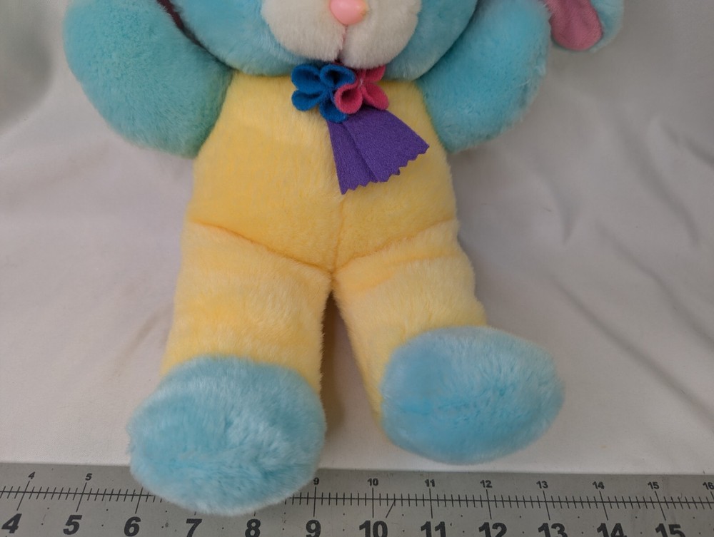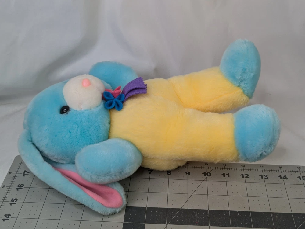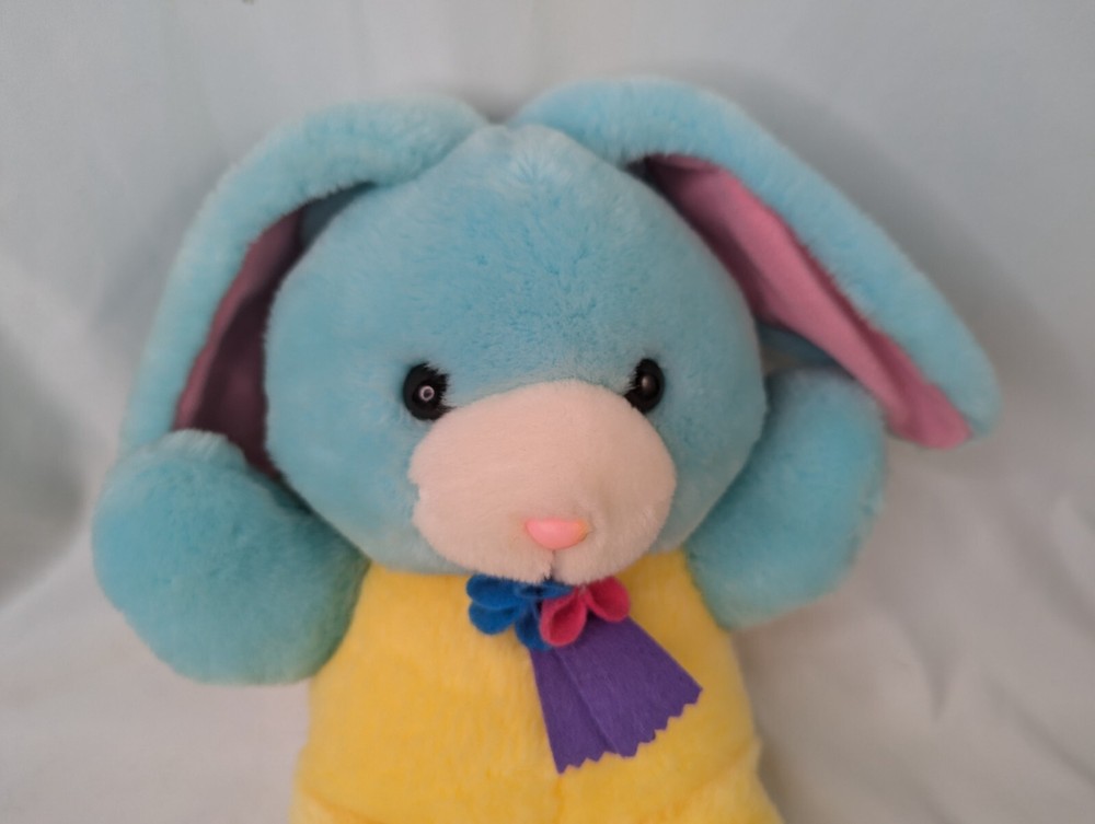 Bunny Rabbit Plush Blue Yellow 13 Inch Dan Dee Imports 1988 Stuffed Animal Toy - great pre-owned condition, light play wear from play/handling, please view all pics.