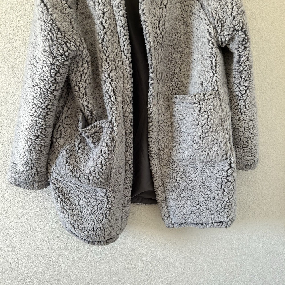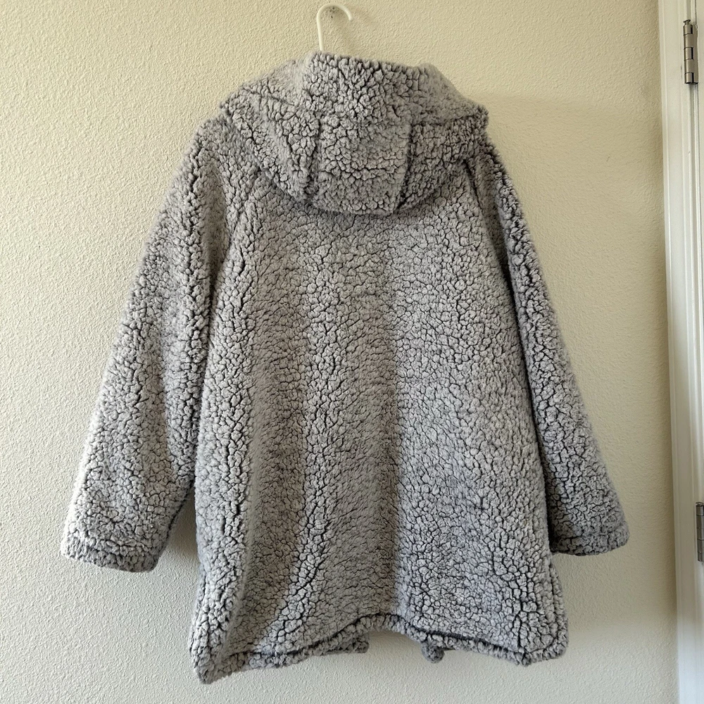 C&C California Women’s Teddy Jacket Medium Gray Cozy Warm Winter in great condition/ Not stretchy/ open front with hoodie/ pockets / super cozy and warm 26” across pits 33” length 28” sleeves from neck Approximate measurements All final sale #90 Cozy winter warm Cozy