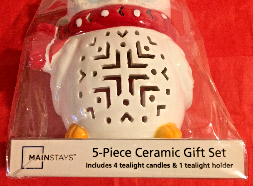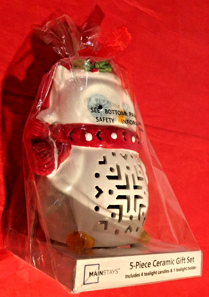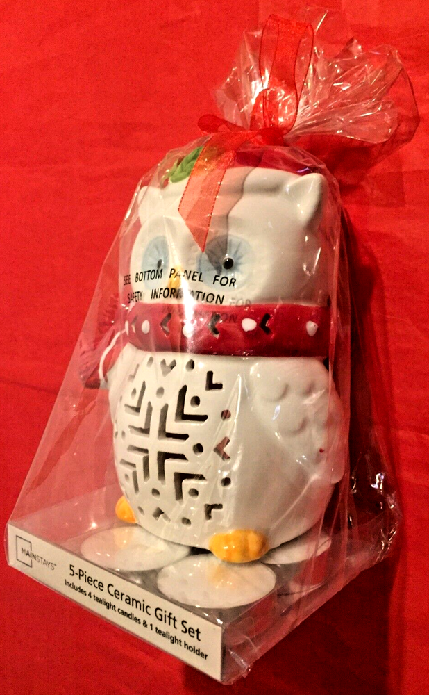 This Is A Mainstays Brand, Tealight Candle Holder Christmas Gift Set, Set Includes A 5.5" Tall Christmas Owl Tealight Holder Made Of Ceramic & Four Tealight Candles, Plastic Wrapped With A Red Bow, It Is Brand New!, ( Please See Photos! ), Thanks for looking! & Please Visit My Store & Check Out My other listings!, All orders are packed securely to help prevent shipping damage!