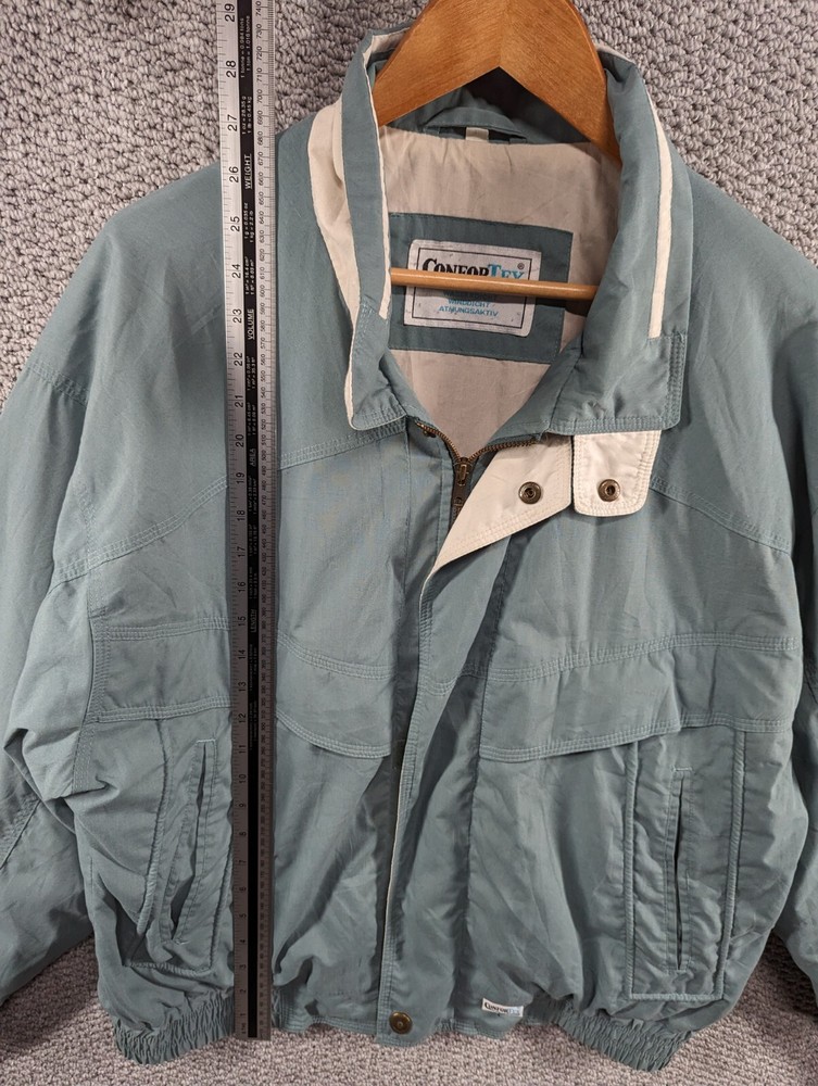 CONFORTEX Vintage Men's Hi-Tech Waterproof Windproof Outdoor Harrington Jacket Size: L Please compare the measurement from photos to your favourite garments to ensure desired fit. Used, but in good condition, no stains or tears, p lease review all photos for details and measurements. High resolution, not edited, only real product photos attached. Shipping: All orders placed by 1pm will be shipped on the same day. If you have any special requirements regarding shipping & delivery, please contact us to discuss it. Returns: W e can accept returns of all items up to 30 days from the date of purchase. T he item must be returned in the same condition as when it was received. Contact Us: If you have any questions, then kindly please contact us via the ‘Ask a question’ Tab which is located on the bottom of the listing page. Our customer satisfaction is at the top of our priority. We aim to provide a pleasant shopping experience for all of our customers. If there are any questions or problems, then kindly please contact us via an ‘eBay’ message and we take every effort to answer all of the queries put forward for us within 24 hours. If for some reason you are not fully satisfied with your purchase, then please do not leave negative feedback before contacting us as we will resolve the issue for you.
