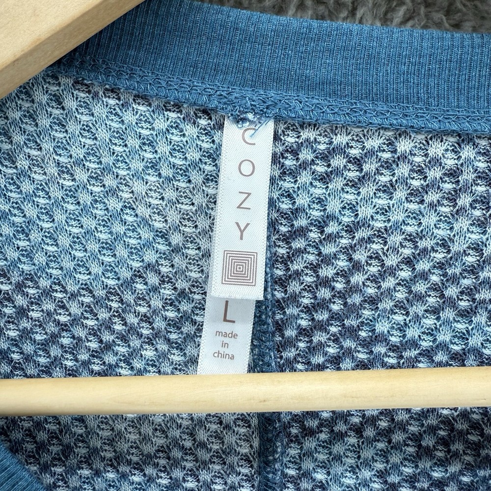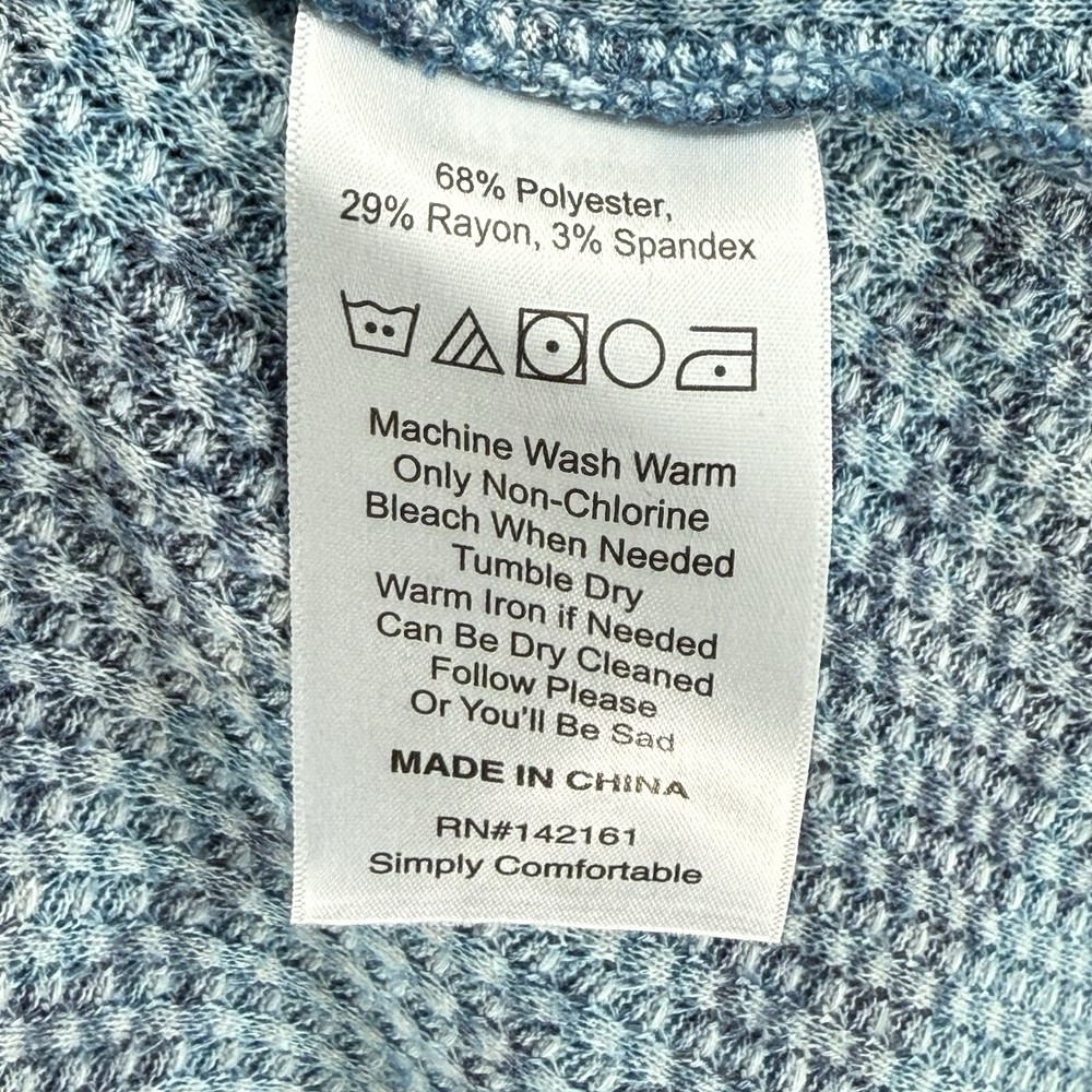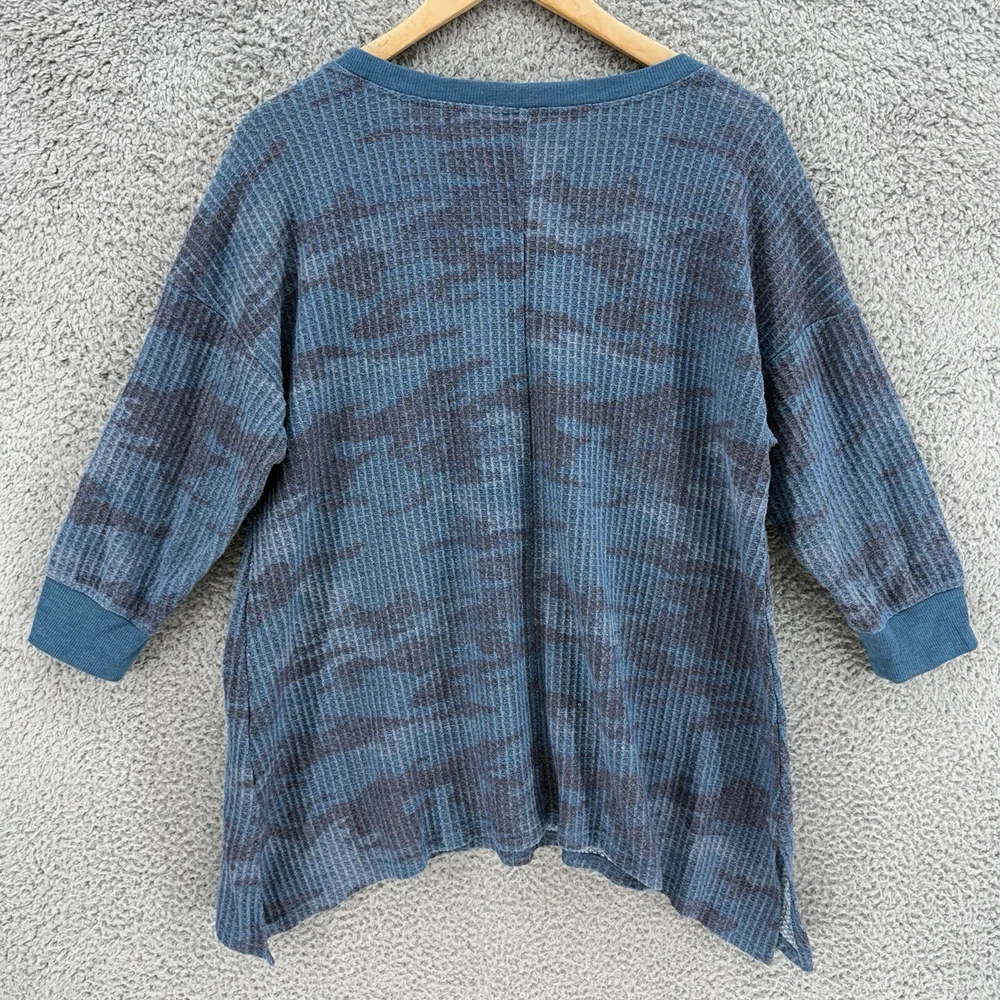 COZY Blue Camo Thermal Comfort Round Neck 3/4 Sleeve Shirt Top Women's Large. Pre-Owned. Good Condition. See Photos for Accurate Representation. Measurements are Approximate.