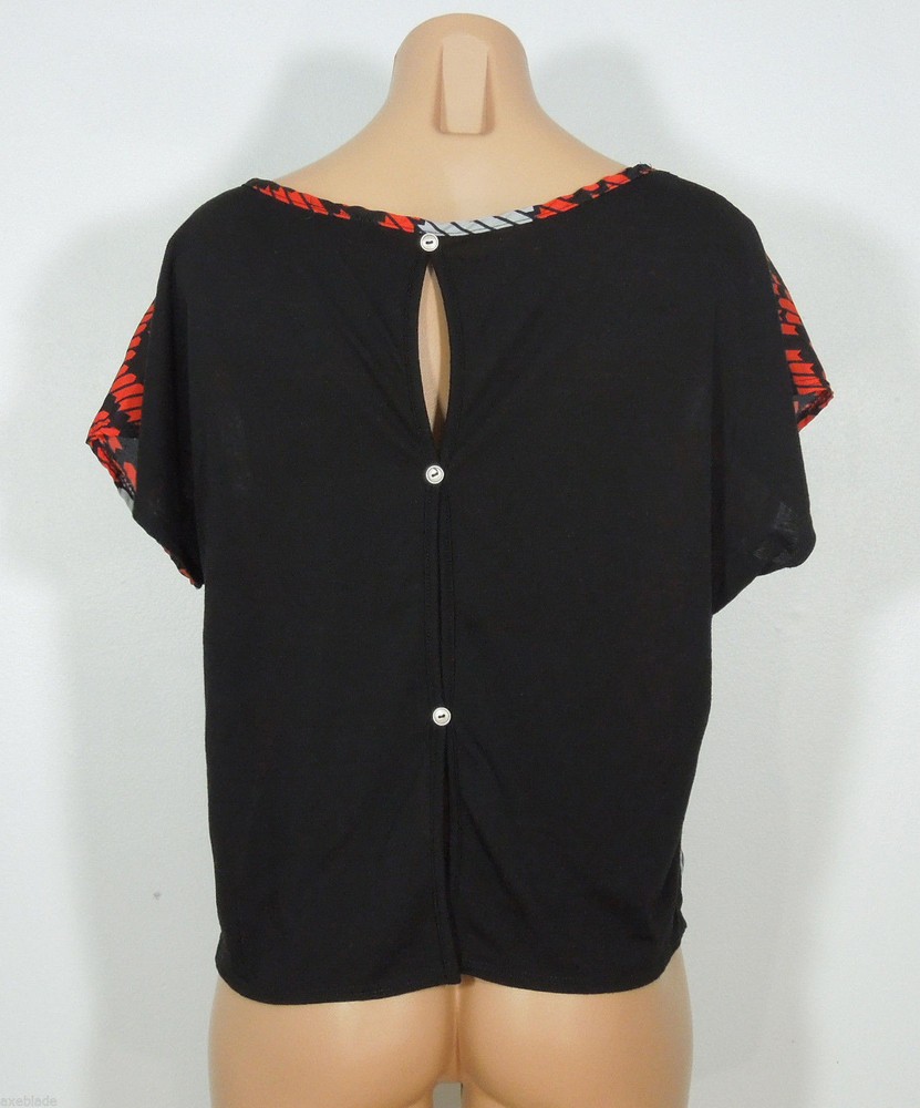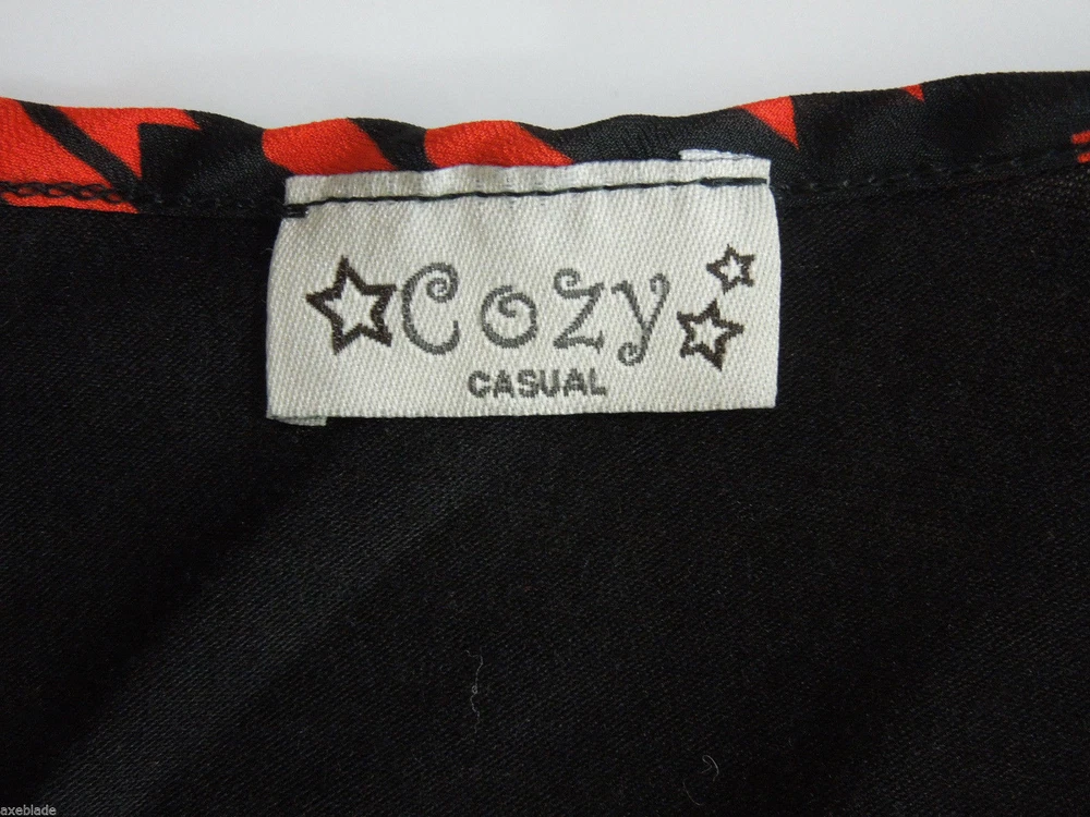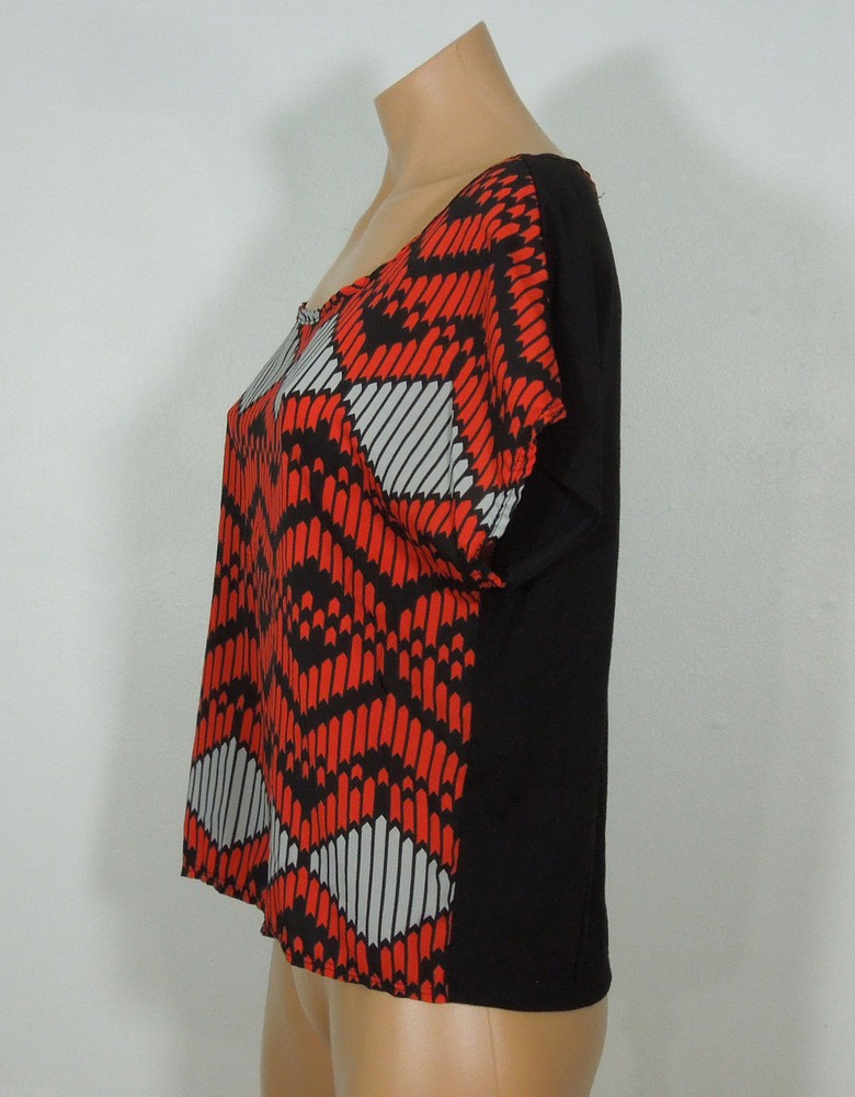 COZY CASUAL Printed Dolman Top, Three Buttons Closure on the Back Browse by Brand / Designer : For the best shopping experience, all pictures are taken at several different angles, so that you can see what you're buying. For your convenience click on the image to enlarge . Please note, colors may vary from picture(s) - (*different monitors, color intensity, picture brightness/contrast) . Condition: Pre-owned,very good condition, no size tag Size: No tag (see measurements) Measurements: 19" long, 21" armpit to armpit, 20" at waist (laying flat) Color: Red-black Fabric: Polyester Sizes listed are based on the item label. Item fit and sizing can vary by Manufacturer. 1 inch equals 2.54 centimeters. Check measurements carefully - (*some used clothes may be shrunk) . Measurements are taken by laying the garment flat. If you have any questions or concerns about any of the items please inquire before your purchase. If there is no option for the offer button , price is not negotiable. [ 50 ]