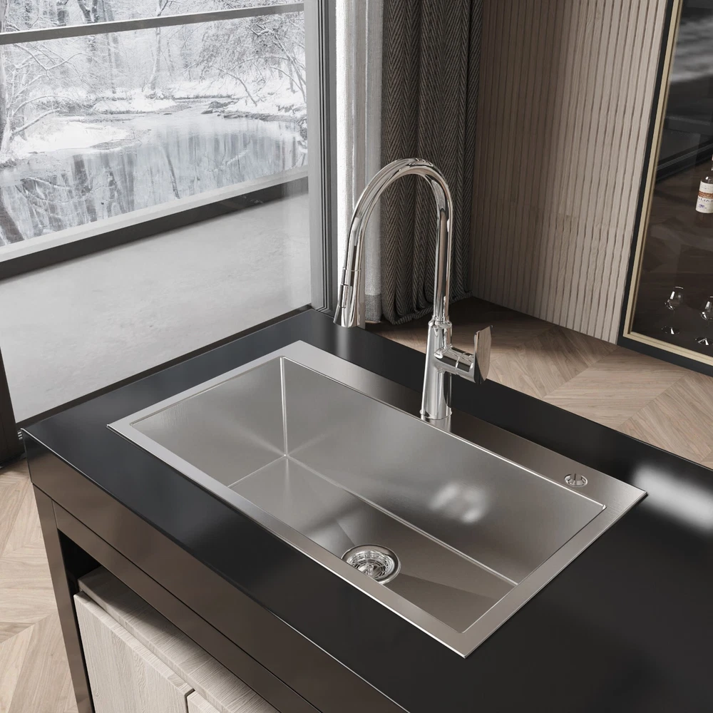 Love this sink! The brushed nickel finish looks sleek, and the deep single bowl fits everything. Super durable and surprisingly quiet—no loud clanging when washing dishes. Installation was easy with the included drain and hook. Perfect upgrade for any kitchen—worth every penny!