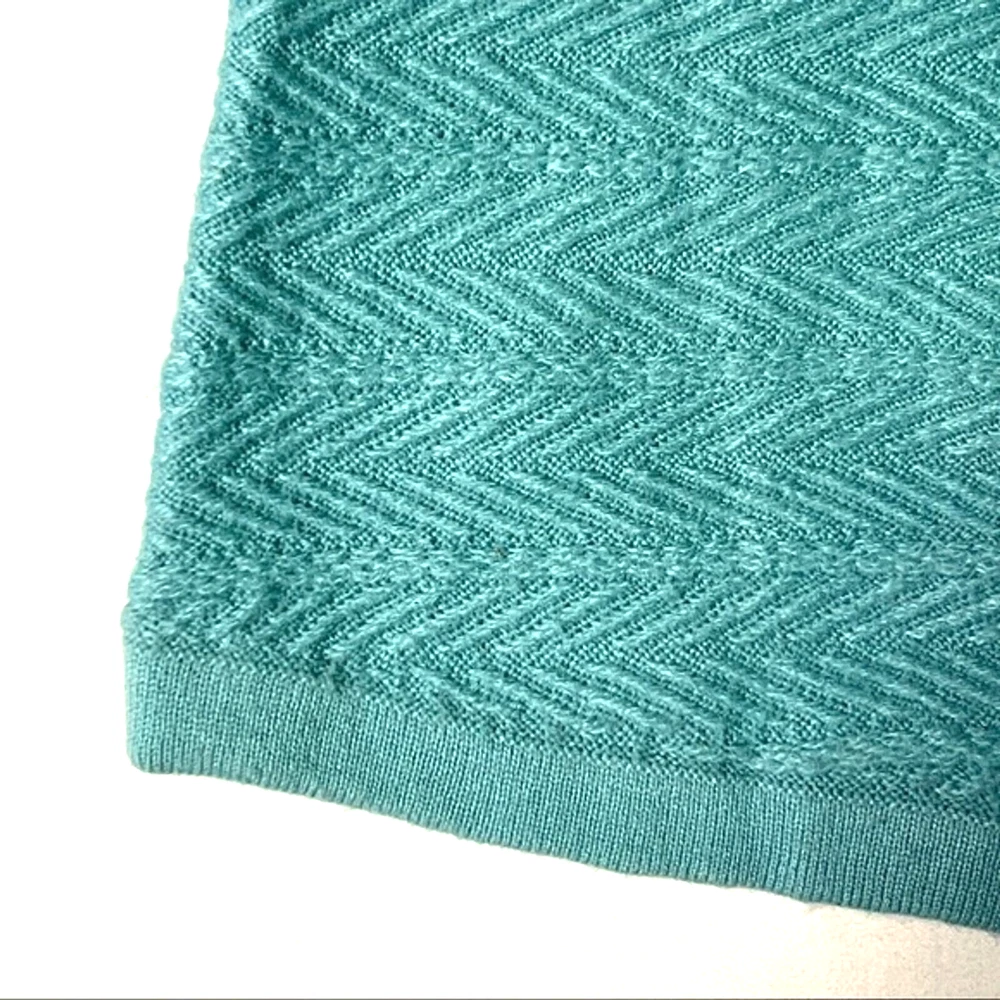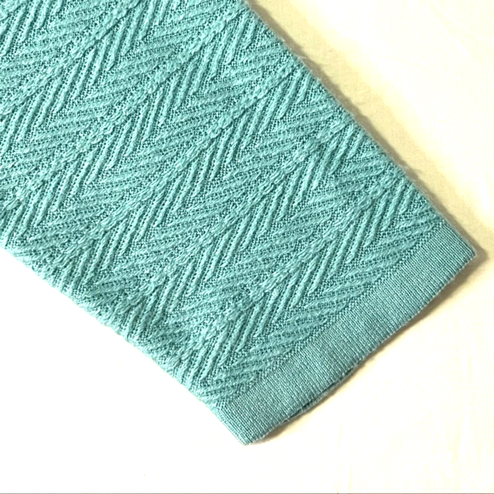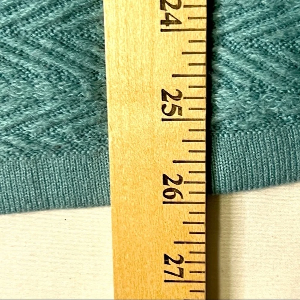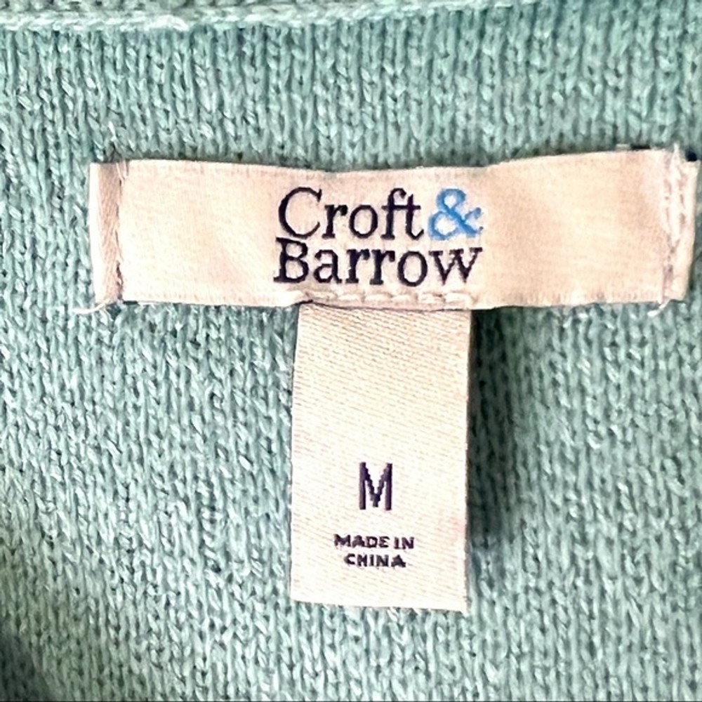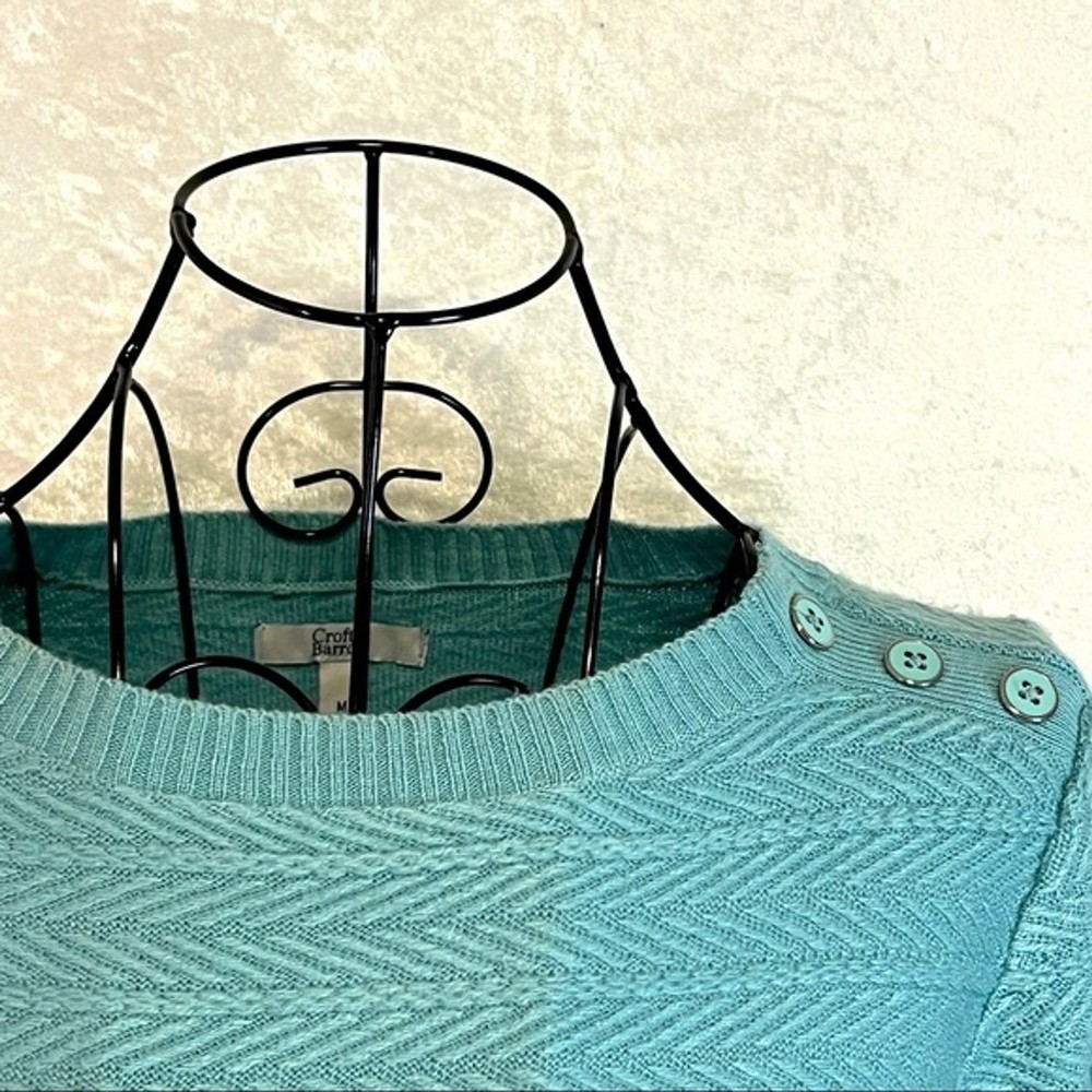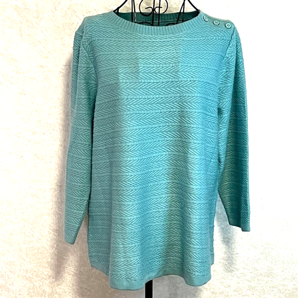 Soft blue textured sweater from Croft & Barrow Womens size medium Excellent pre-owned condition, no flaws Textured blue knit, tight weave, long sleeves, boat neckline, faux buttons on shoulder, 3/4 sleeves, straight hem Measurements taken flat across, see pics Sku: oj/9z/560