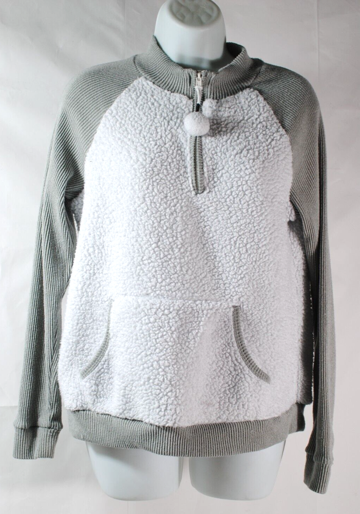 BELLOWS BOUTIQUE For your consideration is to this Cuddi Duds sweater. The pullover style features a zippered neckline, 1/2 zip, long sleeves, and a solid white color with tan faux fur accents. This sweater is made with a polyester and spandex blend fabric, providing both comfort and stretch. It is machine washable for easy care and maintenance. This sweater is a women's size small/medium and has a regular fit. It is great for casual occasions and will keep you feeling comfy and cozy all day long. Measures Flat Shoulders 14" Chest 38" Waist 38" Sleeve 19" Total Length 25" REFUNDS Please refer to eBay Guarantee Policy. e B a y MONEY BACK GUARANTEE PAYMENT SHIPPING I estimate shipping costs and try to be reasonable and as accurate as I possibly can be. All items to be mailed in one business day above receipt of payment. If you are requesting combined shipping, please wait for invoice to be sent to you. Thank you.