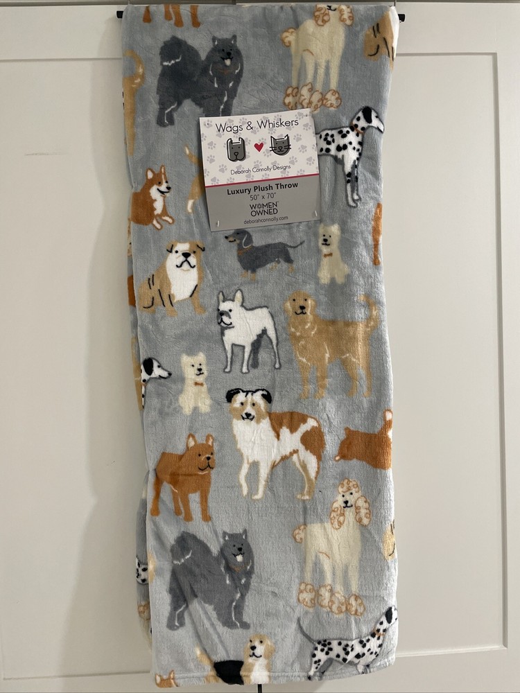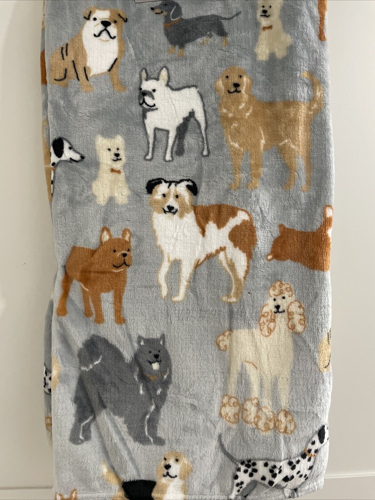 Snuggle up with this cozy and charming throw blanket featuring a playful large dog print multi- colors. Measuring 50"x70" and made of soft polyester material, this large throw blanket is perfect for y...