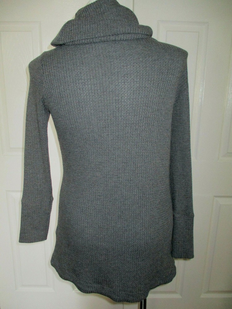Embrace the comfort and elegance of the CY Fashions Women's Cowl Neck Sweater. This medium-sized, pullover style sweater features a cozy waffle knit design, providing both warmth and a touch of sophistication. The chic gray hue makes it a versatile addition to your wardrobe, perfect for various occasions. The sweater is accentuated with an eye-catching drape cowl neck and tasteful button details that add a subtle touch of class. The long sleeves ensure coverage and comfort during cooler days. Made from a blend of polyester and spandex, it offers both durability and a gentle stretch for a perfect fit.