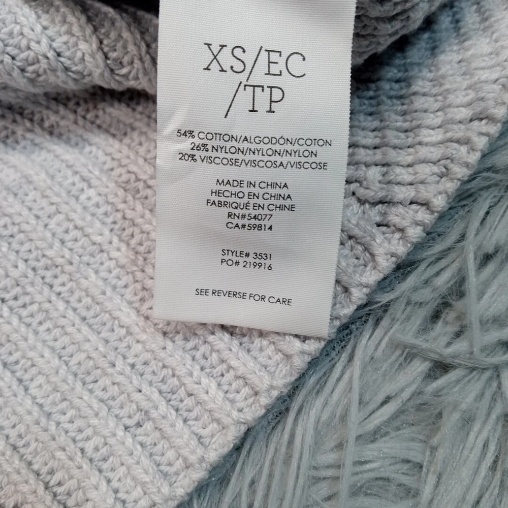 Cabi Sweater Womens XS Blue Oversized Zip Up Sides Knit Warm Cozy Comfort Very Good Condition. Please review photos for measurements and condition. Item will be shipped within one business day. We ship items daily Monday-Friday. * Product color may vary slightly due to photographic lighting or your monitor settings. * Item has been cleaned.