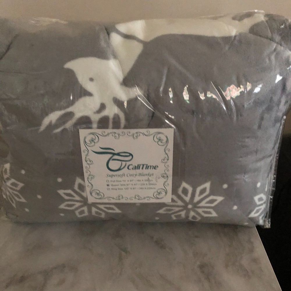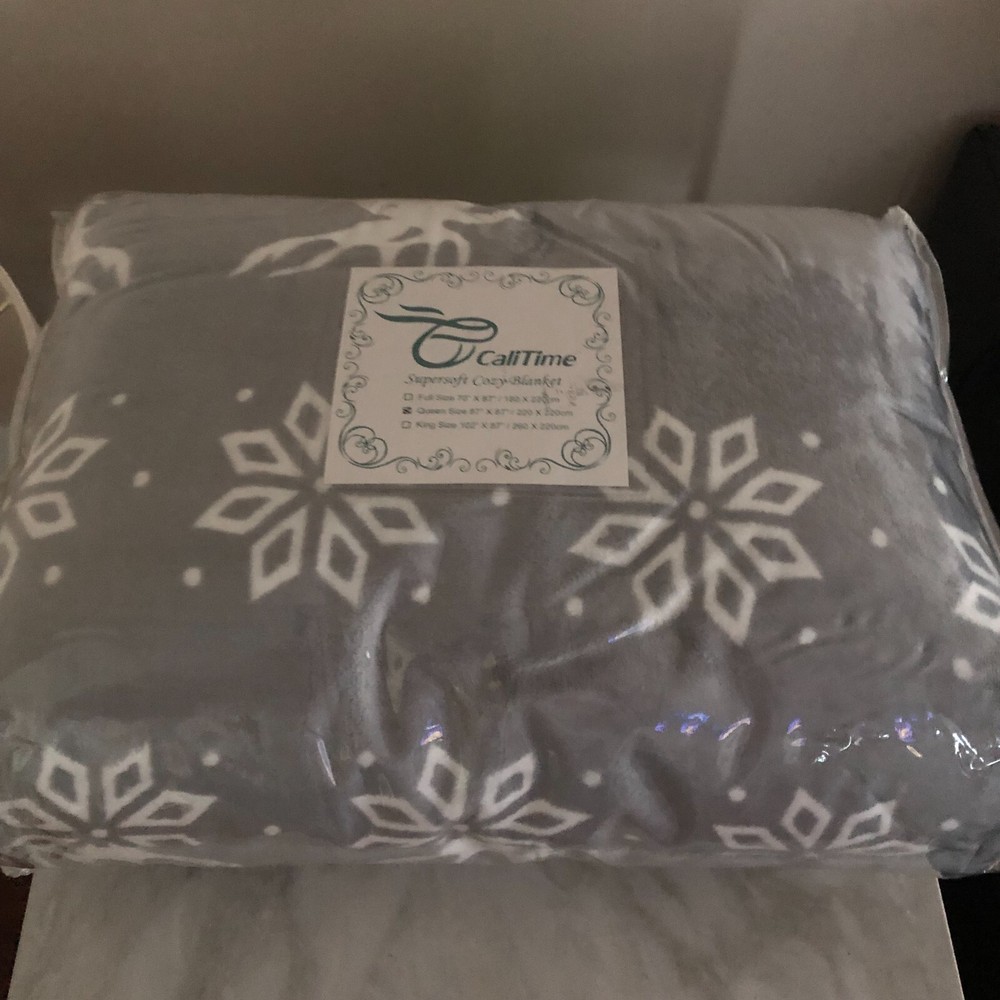 CaliTime Euphoria Supersoft Cozy Snowflake Reindeer Queen Blanket - SIZE: QUEEN THIS IS A BRAND NEW COZY SNOWFLAKE REINDEER BLANKET SIZE: QUEEN COLOR: GRAY/WHITE QUEEN SIZE: 87" X 87" 100% POLYESTER F...