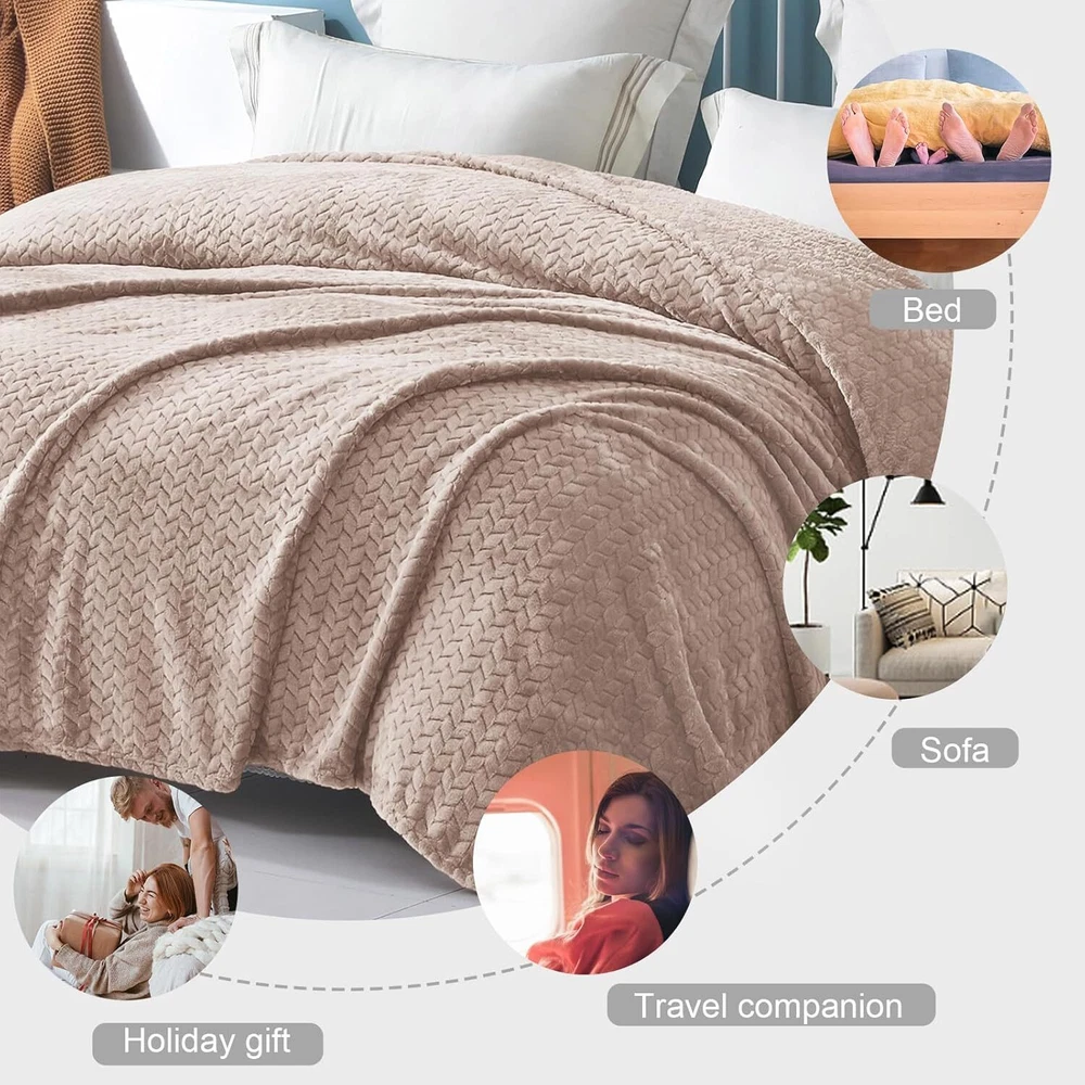Camel Fleece King Size Blanket for Bed, 90x104 Inches Soft Cozy 3D Decorative... Polyester Cozy and Lightweight: The flannel fabric we chose is originally made from microfiber polyester and brushed to create extra softness and lightweight on both sides Multiple Uses: It can protect your sofa/chair from dust and stain, keep you warm and cozy for a nap or movie time. Perfect size and weight to carry with for both indoor and outdoor activities, suitable in all seasons Sturdy: With the microfiber fabric and strong stitches,no need to spend special effort, it would last a long service life at a good condition Decorative: Available jacquard weave leaves pattern, muilt colors and size, this blanket blends seamlessly into any decoration, giving your room a modern, sophisticated touch Easy Care: No need to spend special effort, it is machine washable and dry-able and would hold up well after washing. No shrinkage, No colour fading, and No unravelling Shipping We offer FREE shipping on all orders! We ship within Three business days of payment, usually sooner. Local pickups and combined shipping options are not provided at this time. Return You can return a product for up to 30 days from the date you purchased it. Any product you return must be in the same condition you received it and in the original packaging. Please keep the receipt. Payment We accept payment by any of the following methods: PayPal Please pay as soon as possible after winning an auction, as that will allow us to post your item to you sooner! Feedback Customer satisfaction is very important to us. If you have any problem with your order, please contact us and we will do our best to make you satisfied. Contact Us If you have any queries, please contact us via ebay. We usually respond within 24 hours on weekdays. Please visit our eBay store to check out other items for sale! Thank you for shopping at our store.